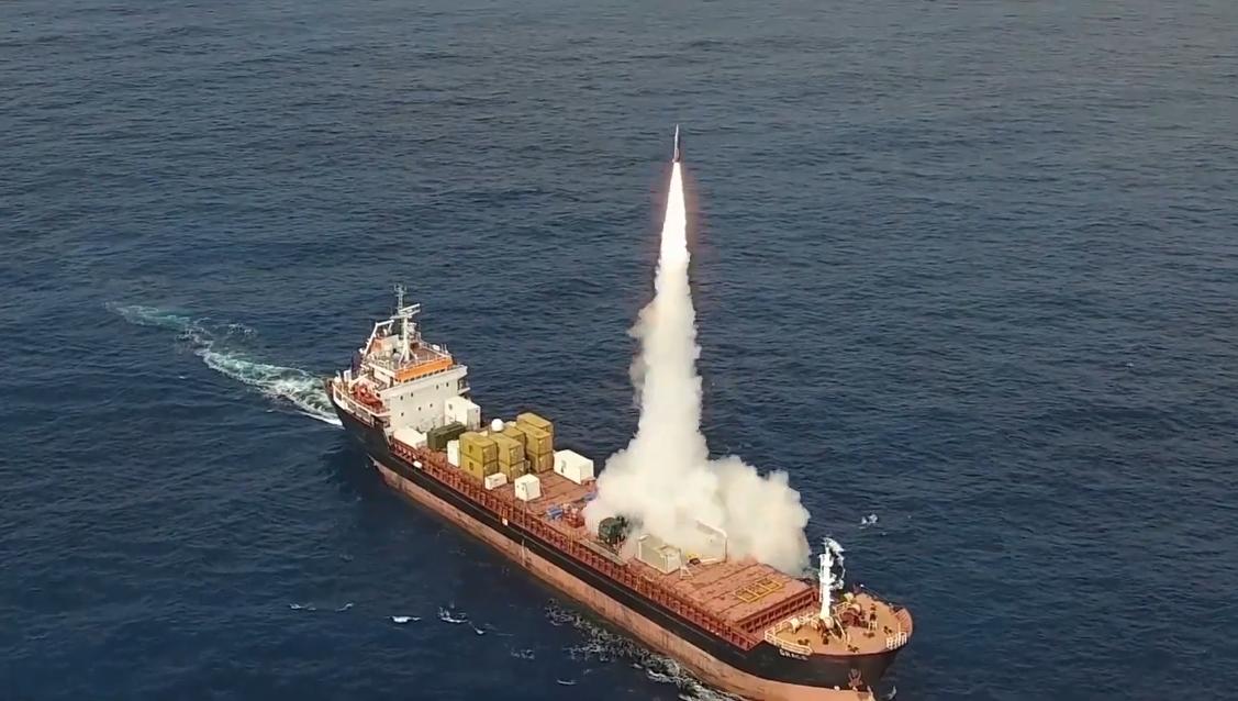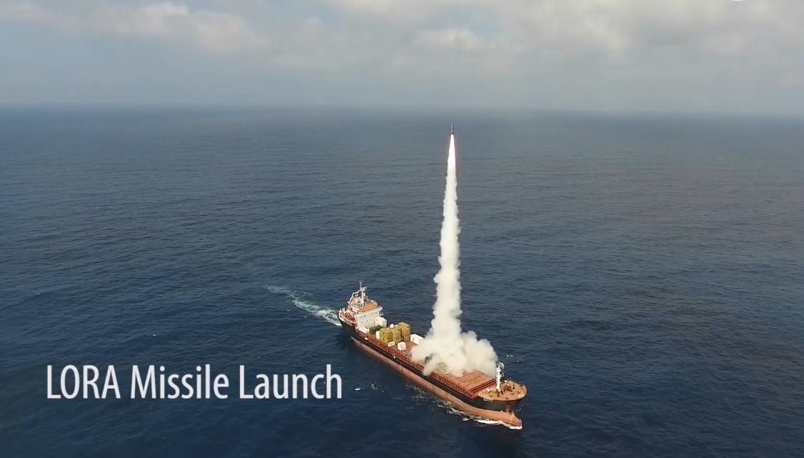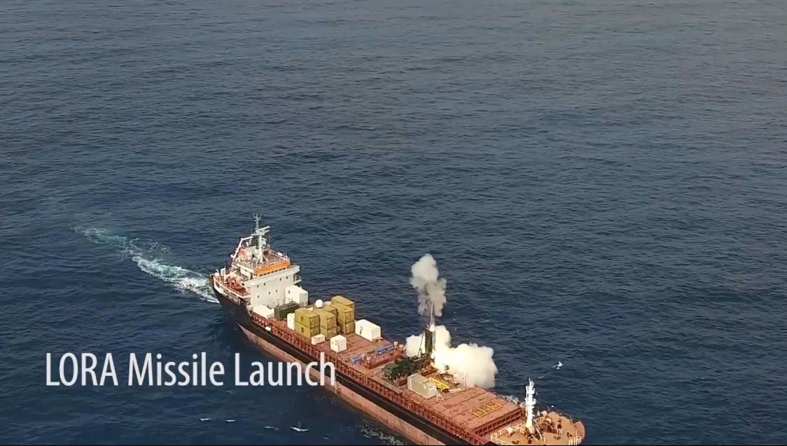 以色列“劳拉”短程弹道导弹系统在商船上进行海上发射试验画面,导弹命中400公里外的预定目标,验证了该系统从海上移动平台实施远程精确打击的能力。 该导弹长约5米,弹重约1.6吨,采用超音速飞行(速度约5-6马赫),配备惯导与GPS定位系统,打击误差半径小于10米。
