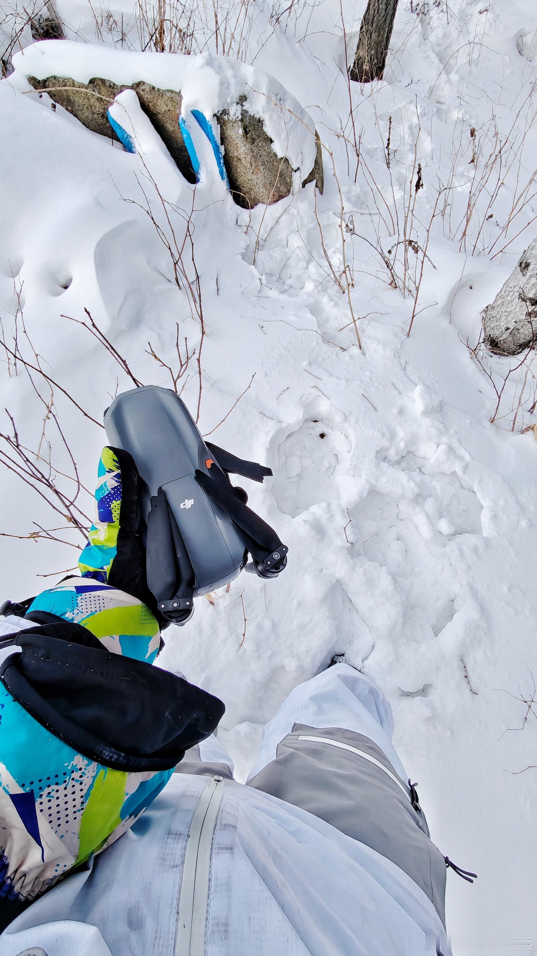 淦了!拍个滑雪无人机掉树林里了,在林子里徒步往山上攀岩赵无人机,运动量严重超标