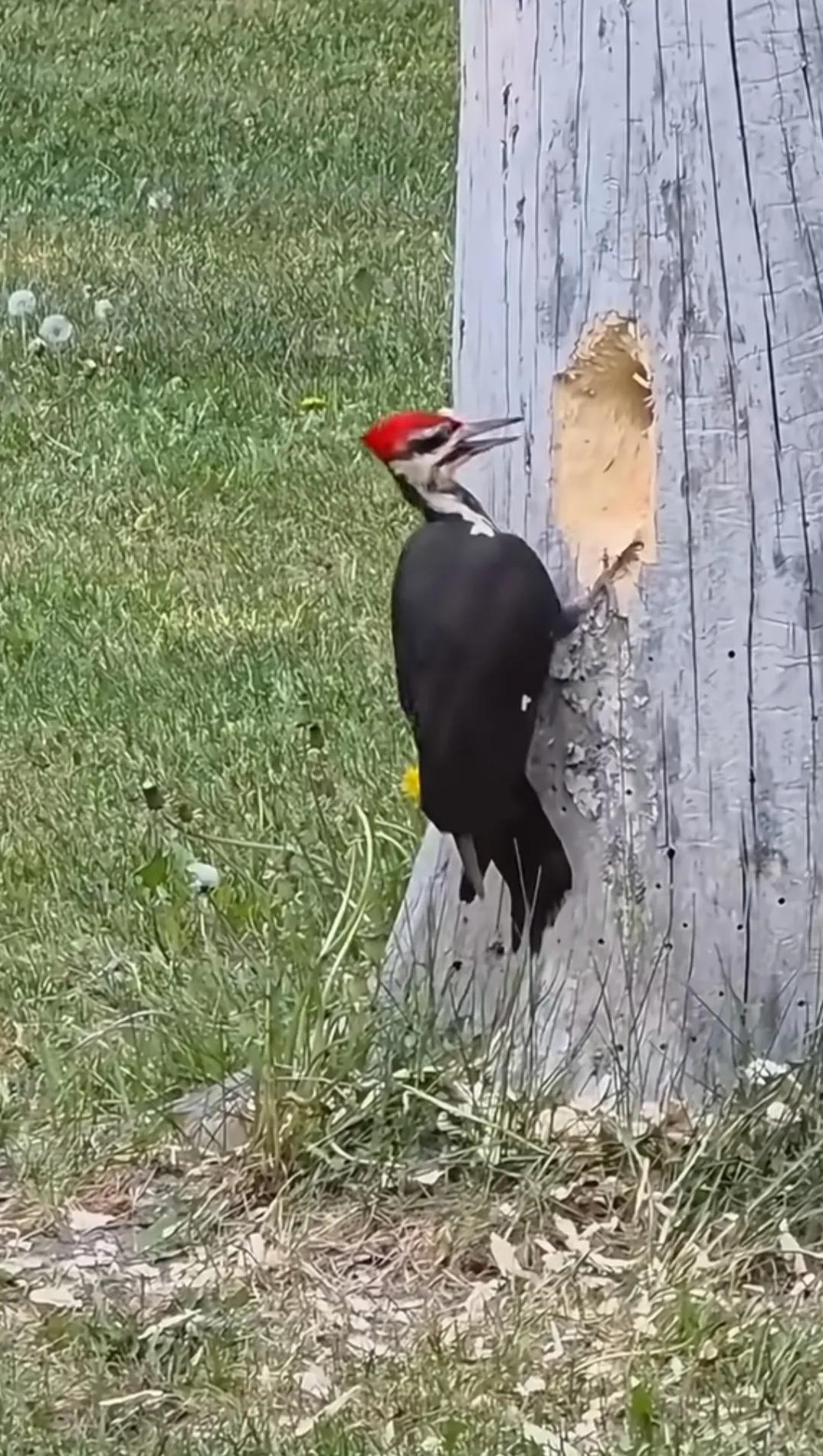摄影师整整蹲守3天终于拍到了“实力派啄木鸟”,看着它一口一口啄成洞,画面太震撼,我已经脑袋疼了!
