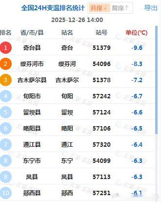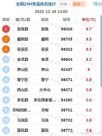 【气温】今天冷空气的影响进入尾声,云南东部和内蒙古中部一带升温明显,云南宜良升9.7℃、嵩明升9.5℃、呈贡升9.5℃,为14时全国升温前三站点。今天因为冷空气或有阴云遮挡光照,新疆奇台降9.6℃、黑龙江绥芬河降8.3℃、陕西旬阳降6.7℃、四川通江降6.4℃、陕西郧西降6.1℃,为14时各自省区降温最强站点。