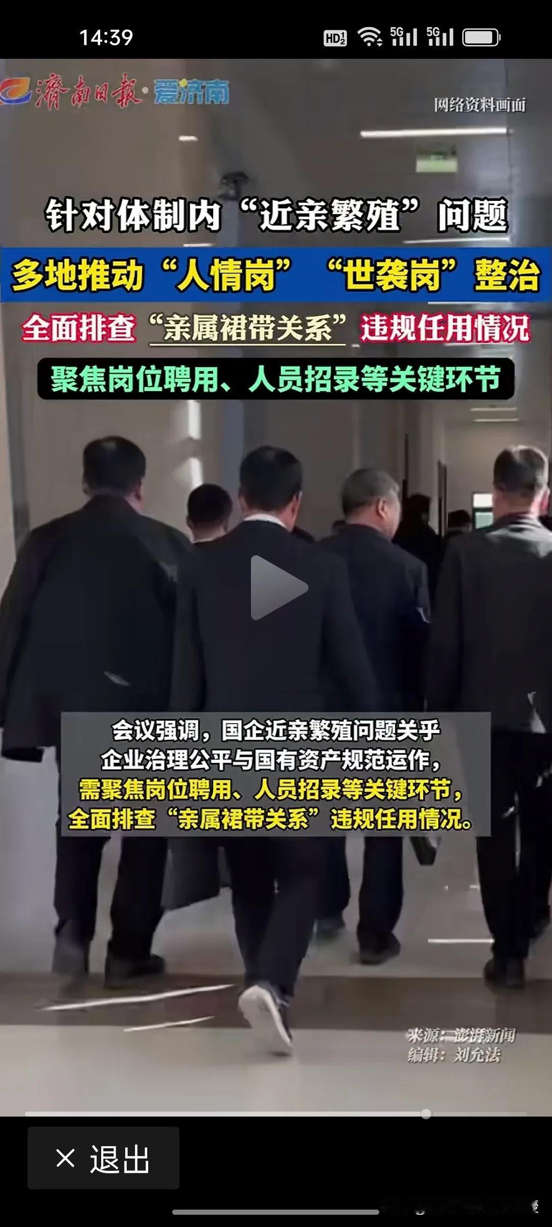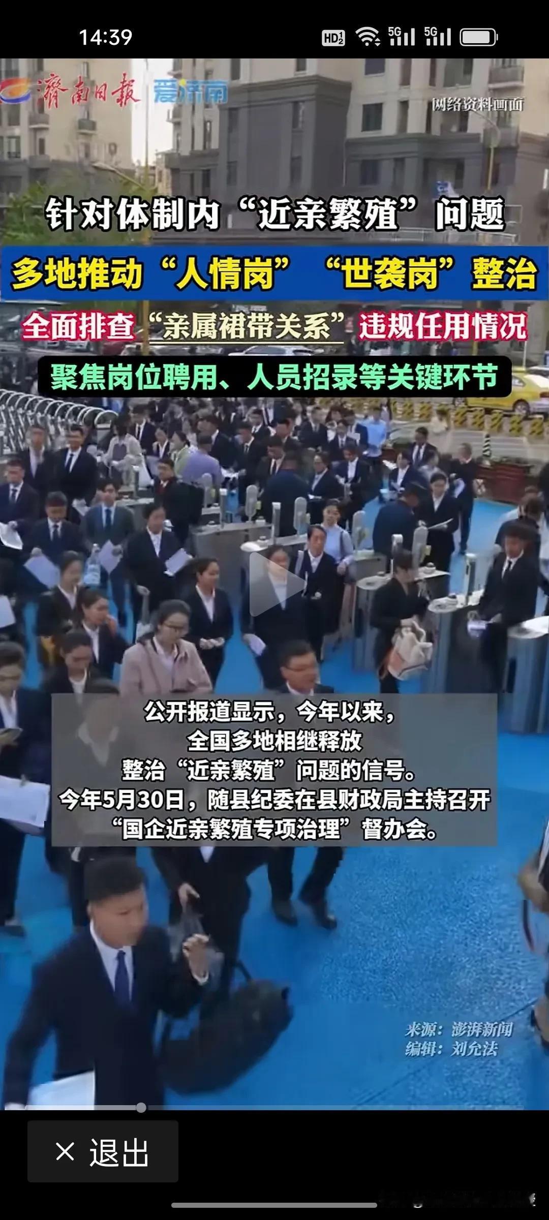 近期,全国多地打响整治体制内“近亲繁殖”第一枪,公务员清廉时代真的来了! 近期,体制内整治大动作接连落地,世袭岗、人情岗的日子要到头了!湖北孝昌排查6家国企338名职工,随县专项督办国企近亲繁殖问题,聚焦招聘、聘用环节清剿裙带关系。未来各地从县级市到地级市的体制内裙带关系清扫力度会更大。 另外,山东更狠,招录公务员不仅考笔试,面试,还核查网络言论、走访家门,摸清考生8小时内外的真实表现。从录用就开始扼杀未来会贪腐的萌芽。 之前我们经常会看到有的县级市公务员笔试面试第一的人却落榜且投诉无门,“萝卜坑”频繁出现。现在从清查裙带关系到全维度考察人员,体制内选人用人的漏洞被逐一堵上,世袭制彻底失去生存空间,未来公务员队伍只会更清廉、更纯粹!各地政府的这一波操作值得点赞[赞][赞][赞]