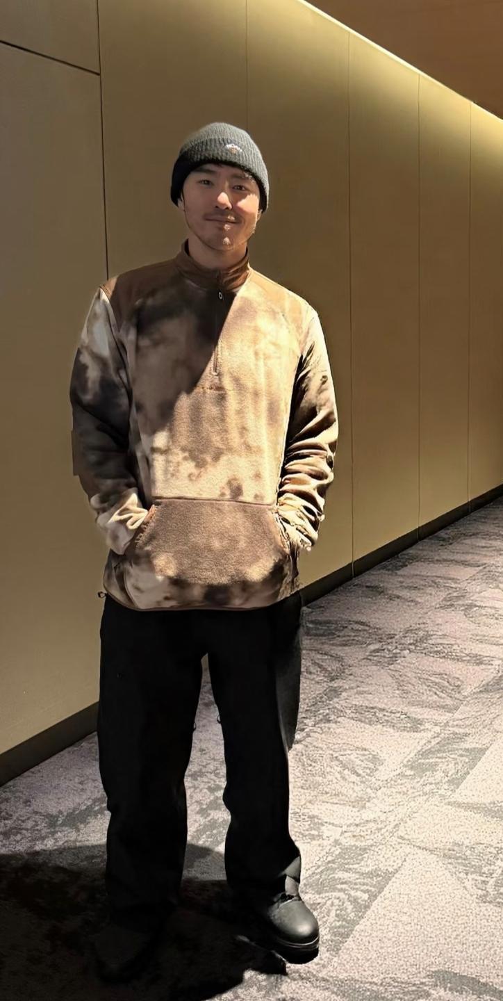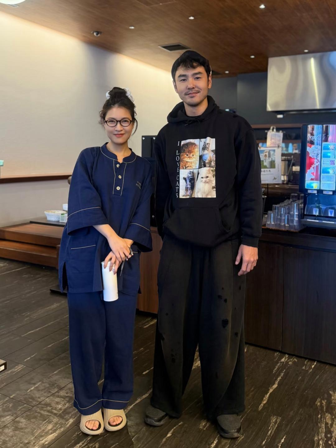 阮经天现身日本酒店泡温泉,胡子拉碴,很是沧桑,头发卷曲稀疏,穿的卫衣有些像乞丐服