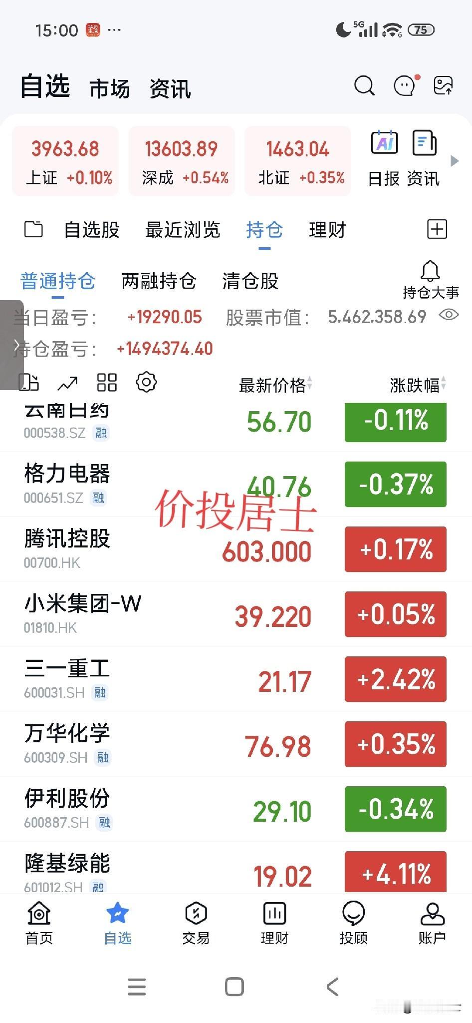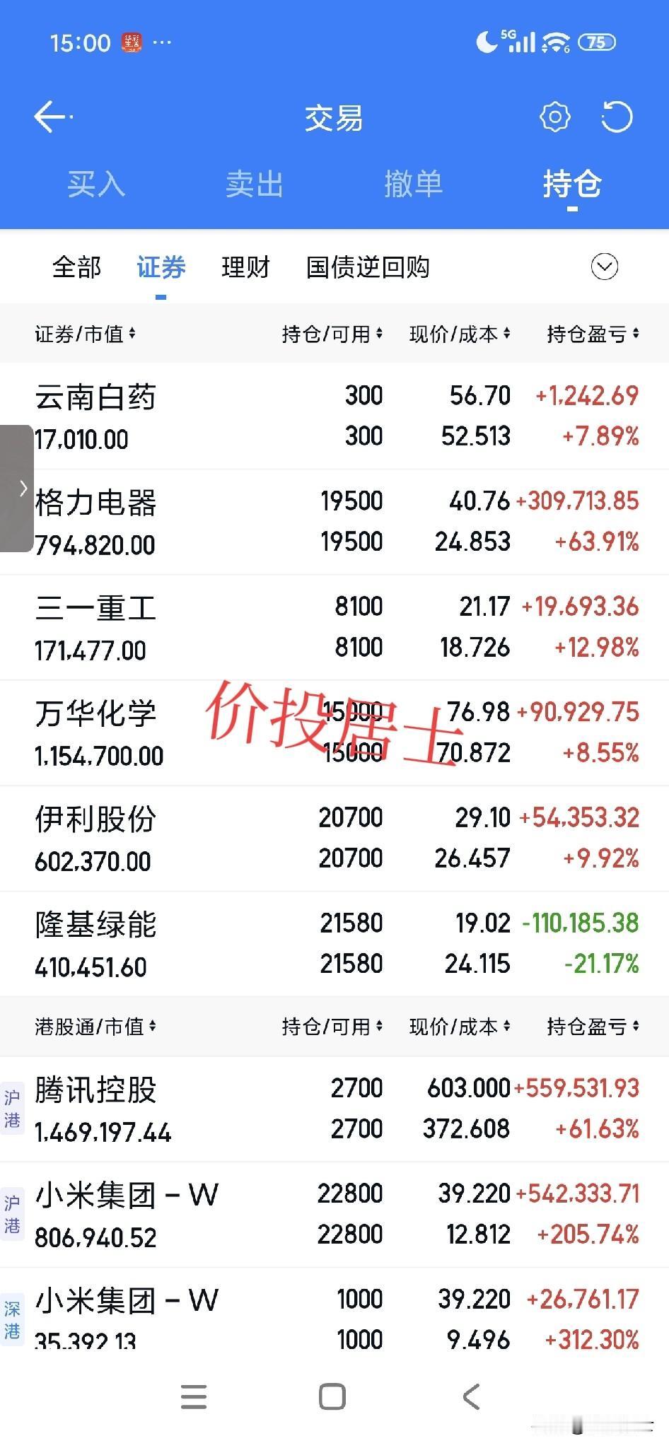 这会A股收盘了!今天港股依然不开盘!今天隆基在沉寂很久之后,来了个大爆发! 按隆基董事长钟宝申发表的观点,在四季度隆基将迎来盈利的拐点,其实稍微有点财务知识的朋友都明白,隆基的三季报要是不计提减值那么多,三季报就已经能扭亏为盈了。 其实不知不觉中,光伏行业已经开始从新兴向传统行业转变了,科技拼到最后拼的就是能源!而显然光伏在未来能源里会扮演极其重要的角色! 本周的交易日结束了,25年也就还剩3个交易日了,个人非常看好26年[笑哭]26将是老登股价格回归价值的一年,将是大宗商品开始水涨船高的一年[祈祷]