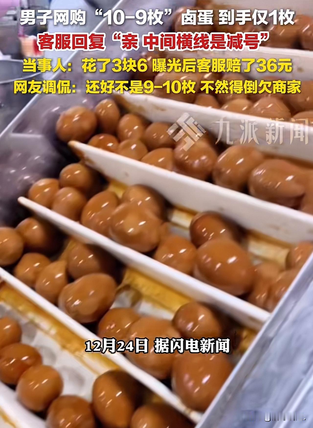 “商家是搞笑的吗?”河南,男子在网上买卤蛋,看到一商家标注“10-9枚”的卤蛋,售价仅3.6元。男子以为9到10个卤蛋的价格是3.6元,就马上拍了一单。谁知,货到以后,男子发现包裹里就1枚卤蛋。男子傻眼了,赶紧找到客服询问情况。客服解释:10-9中间的“-”是减号,10减9就是1枚。男子说:你说这话,不觉得好笑吗?网友调侃:商家笨了,该写9-10的,这样就可以名正言顺收钱不发货了! 王大哥平日好吃卤蛋这口。 一日,他闲来无事,打算在网上买几个解解馋。 打开购物软件,搜“卤蛋”,唰的一下出来一大堆,价格从几毛到几块的都有。 王大哥这人买东西,就爱挑个实惠的,左滑右滑,眼睛突然就亮了。 有家店的卤蛋,标题上明明白白写着“10-9枚”,售价才3.6元。 “这不捡着大便宜了吗!”王大哥当时心里乐开了花,心说这老板怕是疯了,9到10个卤蛋才卖3块多,平均下来一个才三毛多,比超市便宜多了。 他压根没多想,觉得肯定是商家搞促销冲销量,连商品详情都没仔细看,直接咔咔下单,付款的时候还美滋滋地想,这下能吃到爽了。 下完单,王大哥就天天盼着快递,没事儿就点开物流信息瞅两眼,嘴里还念叨着“我的卤蛋啥时候到啊”。 好不容易熬到快递员打电话,他麻溜地冲下楼取包裹,拿到手的时候却有点纳闷,这包裹咋这么轻? 捏了捏,软乎乎的,拆开一看,王大哥直接愣住了。 包裹里就孤零零躺着一个卤蛋,安安静静地躺在泡沫垫里,显得格外“形单影只”。他还以为是商家漏发了,毕竟标题上写的是10-9枚,怎么着也得是9个起步啊。 于是,王大哥抱着“肯定是搞错了”的心态,打开了和商家的聊天框,客客气气地发了条消息:老板,我买的卤蛋收到了,但是怎么就一个啊?你是不是漏发了?标题上写的是10-9枚呢。 他本来想着,商家看到消息肯定会道歉,然后麻溜地把剩下的卤蛋补发过来,毕竟做生意讲究的是诚信。 结果等了没一会儿,商家的回复来了,就一句话,直接把王大哥干沉默了:亲,没错哦,10-9枚就是1枚呀。 王大哥皱着眉头,盯着手机屏幕看了半天,没明白啥意思,又追问了一句:啥?10-9枚是1枚?不是9到10枚吗? 接下来商家的回复,那可真是刷新了王大哥的认知底线,也让他见识到了什么叫“文字游戏的天花板”。商家理直气壮地说:“亲,这里的‘-’是减号哦,10减9等于1,所以就是1枚卤蛋呢。” 看到这句话的时候,王大哥感觉自己的脑袋嗡的一声,像是有无数只蜜蜂在飞。 他盯着屏幕上的“10-9=1”,愣了足足半分钟,缓过神来之后,气得差点把手机扔出去。他活了几十年,还是头一次见有人这么用减号的,这哪里是卖卤蛋,这分明是考验顾客的数学能力,还是脑筋急转弯那种! 王大哥当时又气又笑,手指头都有点抖,敲了一句话发过去:“你自己说这话,你自己笑了没?” 那边的商家倒是淡定得很,还发来一个笑脸表情,回复说:“亲,我们标题写得很清楚哦,没有欺骗消费者呢。” 王大哥彻底无语了,跟商家掰扯了几句,发现对方油盐不进,一口咬定自己没写错,是王大哥理解错了。 他知道再争下去也没啥用,3.6块钱也犯不着去较真,只能自认倒霉。 随后,他把这件事发到网上,让网友避坑。 《价格法》第13条明确规定,经营者销售商品应当按照政府价格主管部门的规定明码标价,注明商品的规格、计价单位、价格等有关情况。 《价格法》第14条第4项进一步禁止经营者利用虚假的或者使人误解的价格手段,诱骗消费者或者其他经营者与其进行交易。 本案中,商家将“10-9枚”解释为“10减9等于1枚”,完全背离了商品标价的通常惯例。 商家刻意使用易产生歧义的标注方式,未清晰注明商品实际数量为1枚,导致消费者产生重大误解,本质上属于“使人误解的价格手段”,已构成不正当价格行为。 王大哥可以向平台投诉,维护自己的权益。 《不正当竞争法》第8条规定,经营者不得对其商品的数量等作虚假或者引人误解的商业宣传,欺骗、误导消费者。 商家在商品标题中使用“10-9枚”的表述,结合3.6元的低价,极易让普通消费者误以为是9-10枚卤蛋的总价,这种标注方式具有明显的误导性。 商家明知该表述会引发消费者误解,却未进行任何提示说明,反而以“减号”为由辩解,主观上存在欺骗、误导消费者的故意,客观上实施了虚假宣传行为。 事情曝光后,商家向王大哥进行了10倍赔偿,赔偿给王大哥36元。