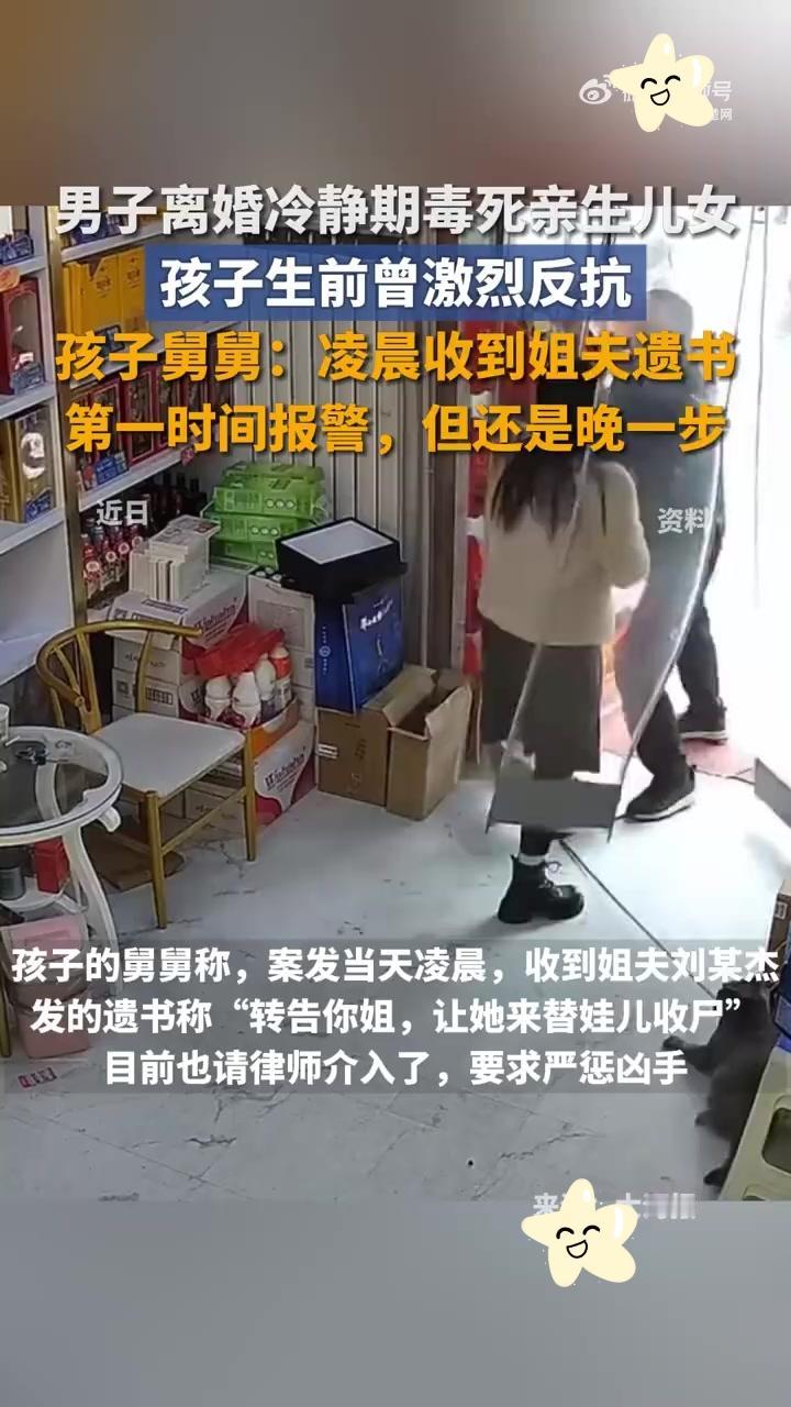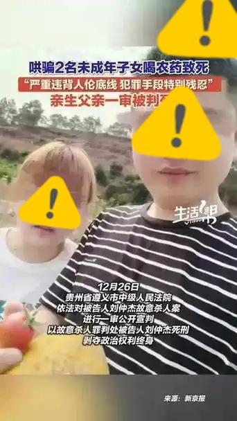 今天,就在今天,两名孩子被亲生父亲用“敌敌畏”毒死! 2025年12月26日,贵州遵义,亲生父亲刘仲杰,因无法接受离婚现实,竟然哄骗两个孩子喝下“敌敌畏”,就因为他说:“喝了就能去找妈妈”,而在孩子们喝下,他却称味道难喝,他喝不下去而没喝。 刘仲杰作案前曾在家族群留下遗书,称前妻出轨而导致的这件事,而他前妻则说是:长期遭受家暴,还被其多次威胁要“同归于尽”,甚至为自保拉黑其联系方式。 无论情感纠葛怎么样,两个孩子是无辜的,大的才10岁,小的只有7岁,因为大人之间的矛盾,而永远的失去了未来! 这位父亲已被法院判处故意杀人罪,剥夺政治权利终身!虽然判了死刑,可两条稚嫩的生命却回不来了! 父亲被判了死刑,恶有恶报是应该的,可那孩子呢?再也活不过来了啊!两条好好的小生命就这样没了,这样的事儿,不值得大家好好想想吗?贵州毒杀儿女案