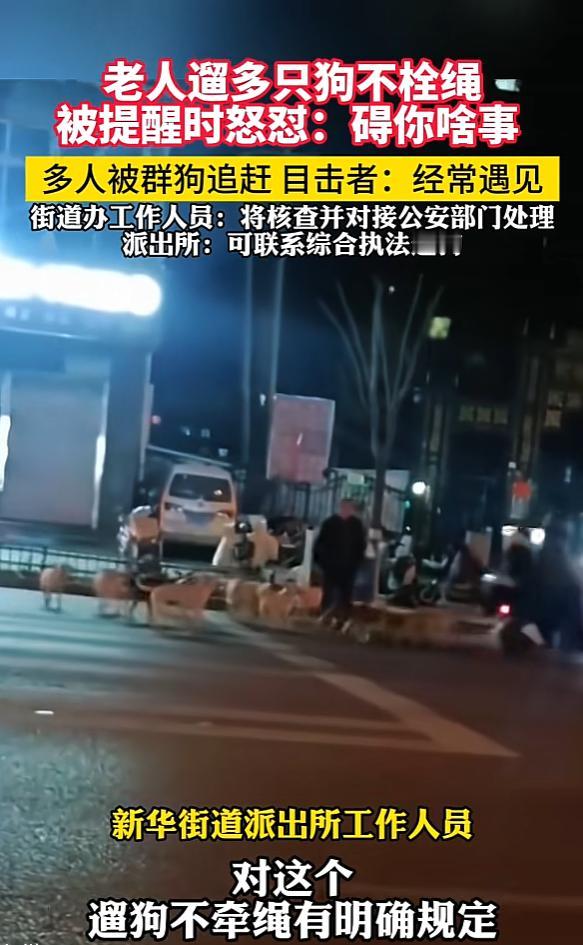“必须严惩!”近日,河北廊坊,一男子出门散步时,见一位大爷带着20多条没有栓绳的狗遛弯,这些狗一直乱叫,并且见人就咬,男子上前提醒,却被大爷怒怼“碍你啥事”,据悉,大爷每晚都会带这些狗出来,给附近居民带来极大困扰。   “二十多条狗追着孩子咬!” 河北廊坊的报警电话里,居民的声音带着哭腔。   2025 年深秋的夜晚,执法车的警灯划破小区宁静,围着民警的居民早已怒气难平。   “每晚七点准来,步道上全是狗粪,孩子吓得不敢出门!” 李大妈攥着皱巴巴的投诉记录。   这一切的源头,是住在 3 号楼的张大爷和他的二十多条 “宝贝狗”。   三年前,张大爷退休后开始养狗,从两只流浪犬慢慢攒到二十多条,越养越上瘾。   起初他还偶尔拴绳,后来觉得 “狗通人性不咬人”,便彻底放任它们自由活动。   每晚饭后,他拎着一袋狗粮,跟在浩浩荡荡的狗群后面,在步道上 “遛弯”。   狗群狂吠着追逐路人,随地便溺,甚至扑咬放学的学生,居民们苦不堪言。   王女士的儿子曾被狗抓伤小腿,她找张大爷理论,反被怼 “孩子自己招惹的”。   物业上门劝说,他闭门不见;城管贴整改通知,他直接撕了扔进垃圾桶。   有居民试着录下狗群扰民的视频,发在网上求助,却没得到实质性解决。   直到这天傍晚,五年级学生乐乐放学路过步道,被三条大狗追着摔进排水沟。   孩子额头磕破流血,吓得浑身发抖,家长赶来时,张大爷还在一旁说 “小题大做”。   这一次,居民们不再忍耐,十几户人家一起拨通了 110 和 12345 热线。   民警和城管赶到时,张大爷正坐在长椅上喂狗,狗群围着他狂吠,场面混乱。   “这些狗都是我的命根子,你们凭什么管我?” 面对执法人员,他态度强硬。   执法记录仪清晰拍下:步道上散落着狗粪,几条大型犬对着路人龇牙咧嘴。   “张大爷,重点管理区每户限养三只,您这已经严重超标了。” 民警出示规定。 执法人员的话让张大爷愣住了,他没想到自己的爱好,竟然影响这么大。   这时,被抓伤孩子的母亲哭着赶来,拿出医院的诊断证明和疫苗缴费单。   看着单子上的金额和孩子额头上的伤疤,张大爷的脸色慢慢缓和下来。   “我就是太喜欢狗了,没想过会给大家添这么多麻烦。” 他的声音低了下去。   执法人员没有立刻采取强制措施,而是耐心讲解法规,劝说他合理处置犬只。   民警上门核查时,张大爷却辩称:“这是救助流浪犬,不算违规。” 执法人员翻看新规条款,发现 “救助犬只” 的界定模糊,暂时无法处罚。   类似的漏洞不止一处,有业主效仿张大爷,把狗藏在阳台,避开日常巡查。   还有人凌晨三点遛狗不拴绳,仗着监控盲区,肆意放任狗群活动。   社区的文明养犬劝导队形同虚设,遇到拒不配合的业主,只能口头提醒。   “我们没有执法权,劝不动的时候,只能眼睁睁看着问题反复。” 劝导队员说。   如今的廊坊,不文明养犬专项整治仍在推进,却多了几分务实的弹性。   社区联合收容站搞起 “领养日”,为流浪犬找新家,缓解张大爷的情绪。   民警则带着执法记录仪,加大凌晨巡查力度,用视频取证破解盲区难题。   居民们也渐渐明白,文明养犬的养成,不是一次执法就能实现的。   这场没彻底解决的风波,它告诉人们,治理从来不是一劳永逸。   规则的完善、人性的疏导、多方的配合,才是破解难题的真正答案。   而张大爷的储藏室门口,那碗狗粮还在,但旁边多了块牌子:“已登记救助犬 3 只”。   这或许就是基层治理最真实的模样:在反复博弈中寻找平衡,在持续努力中靠近文明。       信息来源:《河北一大爷每晚遛20多只狗且不牵绳目击者:不咬人但对人狂吠!当地民警称目前只能口头教育》新闻晨报