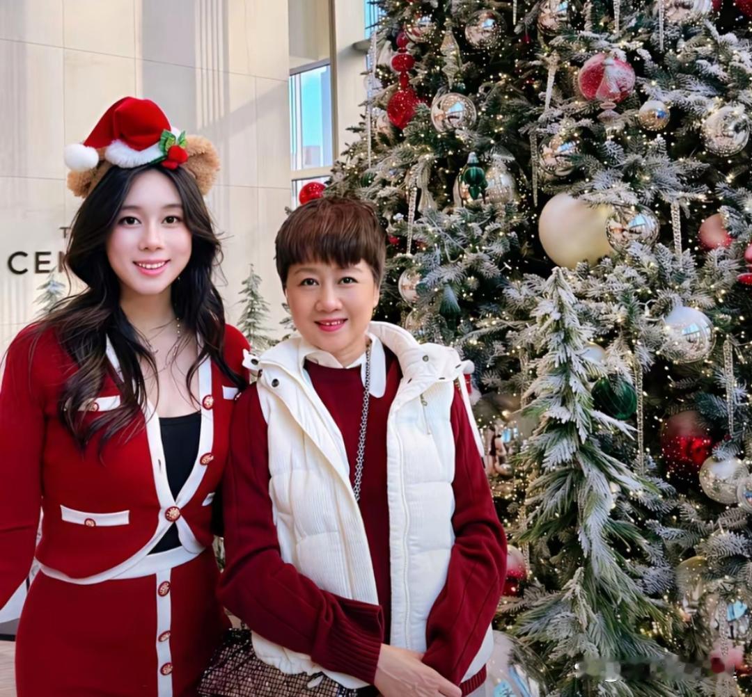 何超欣晒和妈妈嫂子过圣诞的照片。奚梦瑶太漂亮了。