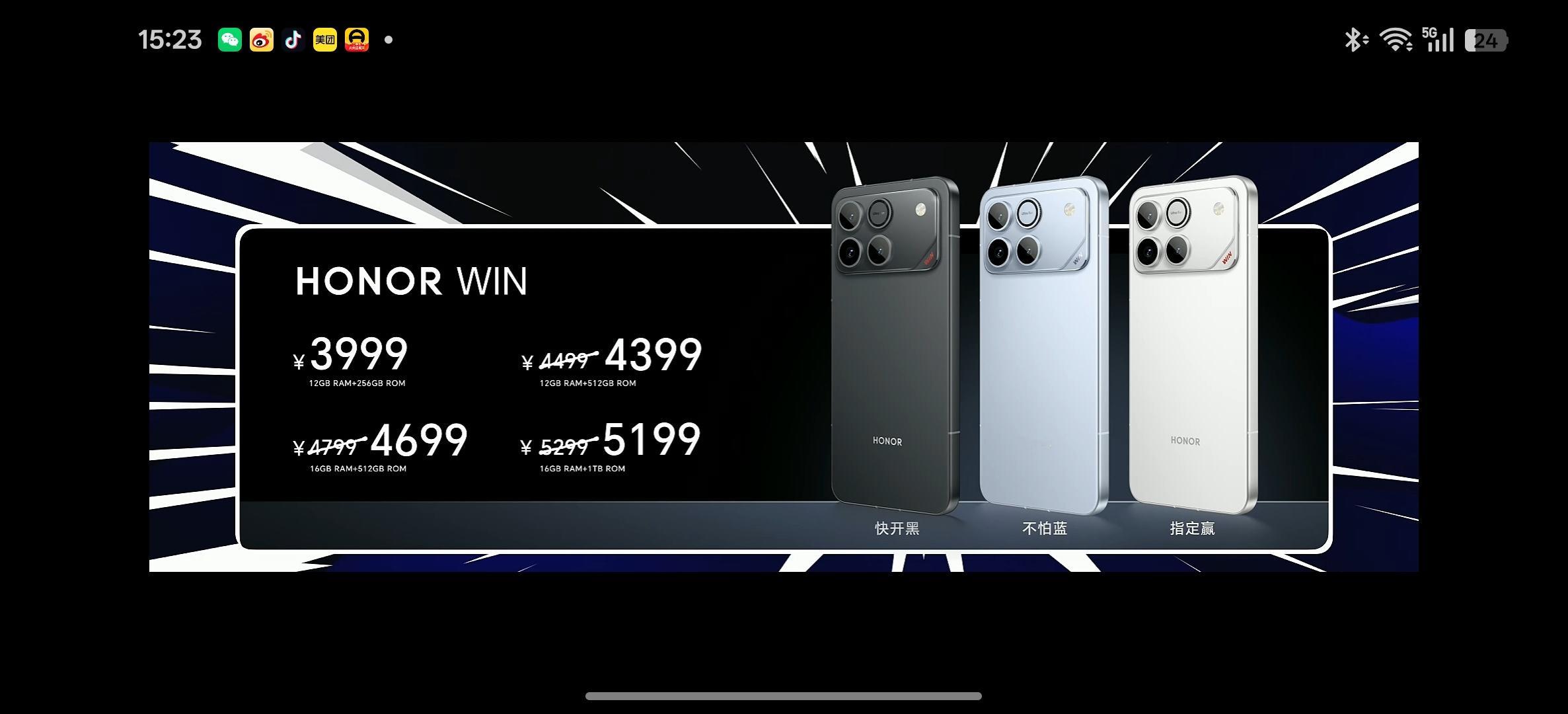 荣耀WIN系列价格公布:荣耀WIN RT:12+256GB 2599元(首销价),16+256GB 2899元,12+512GB 3099元,16+512GB 3399元,16+1TB 3999元荣耀WIN:12+256GB 3999元,12+512GB 4399元(首销价),16+512GB4699元(首销价),16+1TB 5199元(首销价)大家感觉这个价格如何荣耀WIN荣耀发布会荣耀WIN年度电竞最夯机