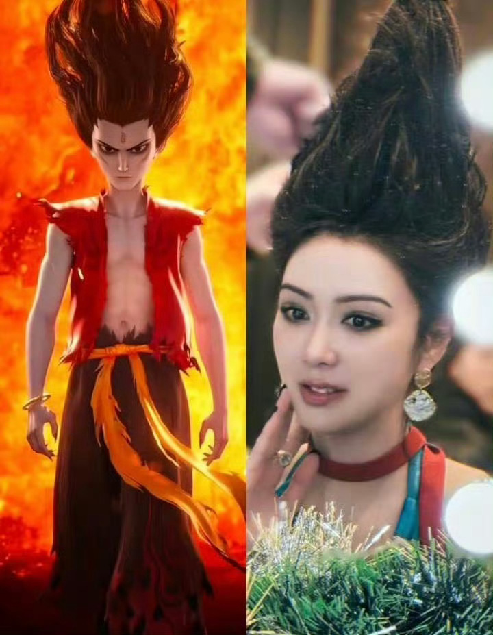 薛凯琪灵珠变魔丸薛凯琪这造型有意思,蓝裙美到发光,可新发型却似魔丸,这反差感一下