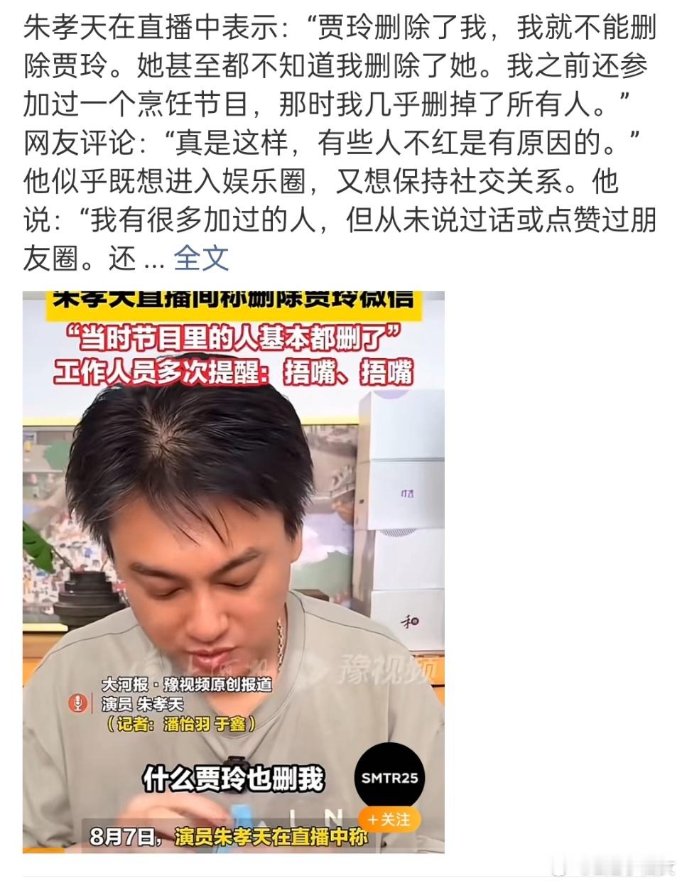 朱孝天情绪失控是消耗公众信任不觉得朱孝天是什么敏感拧巴脆皮人设,他要是真i得不行高敏人,那就不会趁大s热度卖酸辣粉,还能聪明地狡辩”不卖些酸辣粉怎么养她的孩子”。说白了是台娱没有很成功的“明星转网红”案例,但他想走这条路子。用明星时期的热度带货,然后又不想要明星身份必须过渡一部分“体面”给大众的行规。维持热度的方式大致三种,一是没事爆一下删了哪个艺人的联系方式,又拉黑了谁,营造出一种自诩清流,和娱乐圈格格不入的遗世独立。二是diss一下谁办事儿不地道,再阴阳一下别人犯过什么错…除了f4里的其他三位经常被他带出来隔空肘击,再有就是五月天了(张震岳那种硬刚的他反而闭麦)。其实他结婚言承旭吴建豪都有去当伴郎(周渝民老婆当时在生娃),动不动就说人家三个排挤他。第三种是他以前用过的路数,搞女明星的桃色新闻。李冰冰、林熙蕾,类似招数后面他还在用,只不过他这颜值一路西行,所以也没啥人care普人的恋情。演戏没演明白,但直播流量是整的挺明白的。
