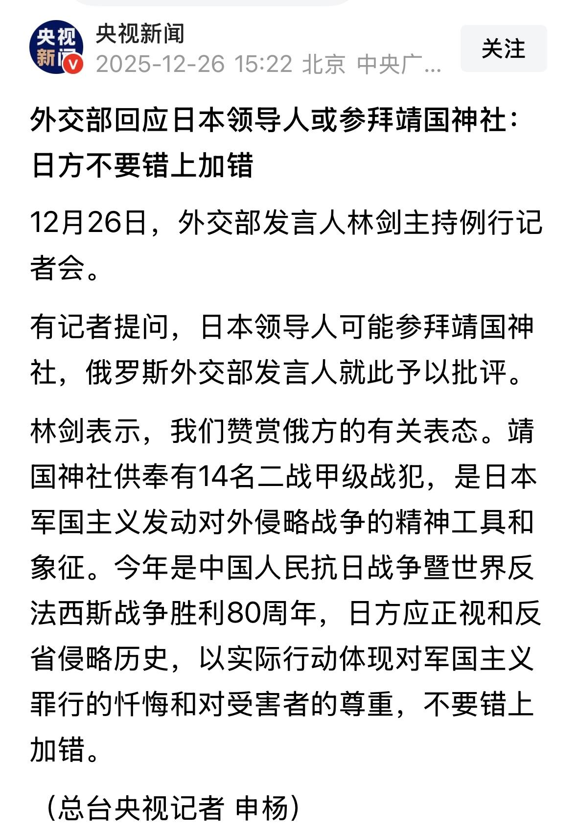 据传高市早苗今天参拜靖国神社,在任首相拜鬼,在日本并不多见!奉劝高市早苗,迷途知返,不要错上加错,不要搬起石头砸自己的脚,玩火必自焚!