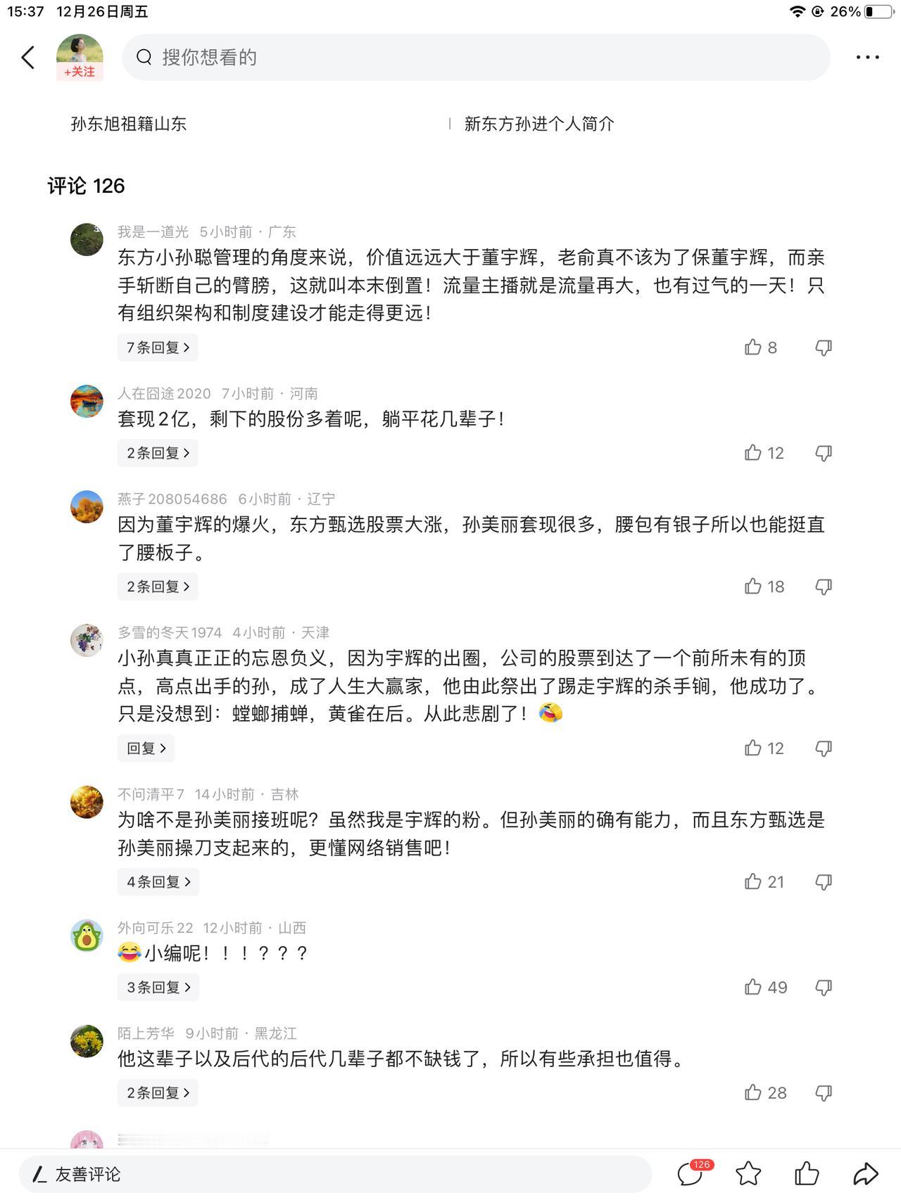 冯冯说新上任的孙总已经在办公了。卸任的老孙也发视频了。他可能是怕网友担心他吧!腰板还是那么直,走路带风,都放心了吧!他很好。他手里有两个小目标,还有一堆的股权。 没有必要担心人家吧!一个南开的高材生,这点能力都没有吗?兜里有米,指定能把自己哄好。握着手里的资产,只要不学老罗创业,死活饿不着,能花几辈子。孙子的孙子都有钱花。 孙美丽的脸上,沟壑更深了。他只需要二三十斤肉,就能好看多了!霸总的气质就出来了。他有骨头,硬着呢,就缺点肉。这肉,是真难长啊! 吉林那场事故,都过去了吧!回头再看,也没有第二套方案了吧!一切都是最好的安排。小孙的犀利,反倒加快了宇辉的离开。如今还不到年底,就200多亿的销量了,这还都是小客单价,没有大贵大贵的东西呢! 小孙也因为宇辉的爆火,提现了那么多的财富。不知夜深人静时,他会不会感谢宇辉?