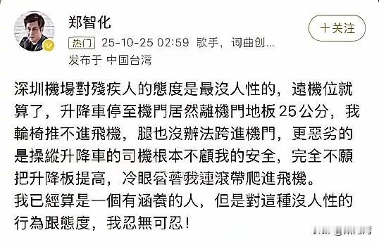 台湾艺人郑智化深圳机场“连滚带爬”装可怜,转头在台媒放“文明野蛮”狠话,道歉像演