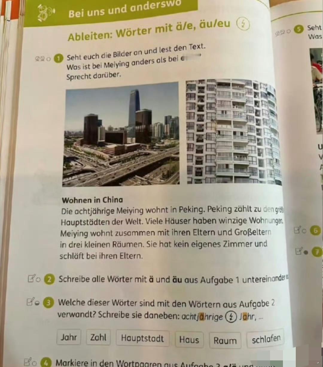 简直离谱,德国小学二年级的教科书对中国的介绍竟然还停留在80年代,这都2025年了啊,大量德国企业在中国,大量德国人在中国工作,难道不了解中国,这是典型装聋作哑,刻意抹黑了。里面说中国人还没有车,出行靠自行车,大家见面打招呼不握手,鞠躬。北京是中国的首都,房子很小,大部分人几代人挤在一个小房子里。德国