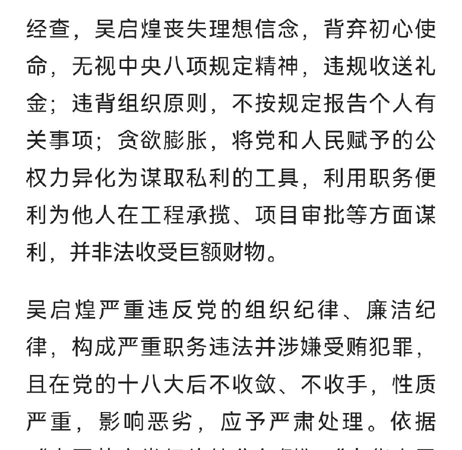 汕头,退休2年的老吴,告别退休金了 1963年出生,1985年厦门大学毕业, 妥妥滴985高材生啊! 凭着这一优势,老吴一天也没到基层历练过。 从笔杆子,一路往上,一直做到了金平区1号,在任整整6年。 2018年后再进一步,到达自己级别的最高点。 没想到,退休没到3年,他就"东窗事发",6月官宣进馆, 今天官宣被开除D籍,取消退休待遇并移送起诉。 嗨!只要犯了错,就得自己买单!