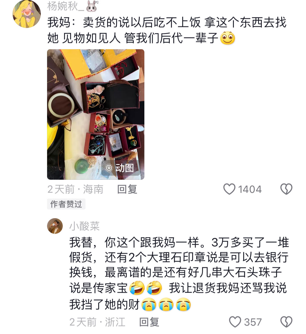 我妈:卖货的说以后吃不上饭 ,拿这个东西去找她 ,见物如见人,管我们后代一辈子