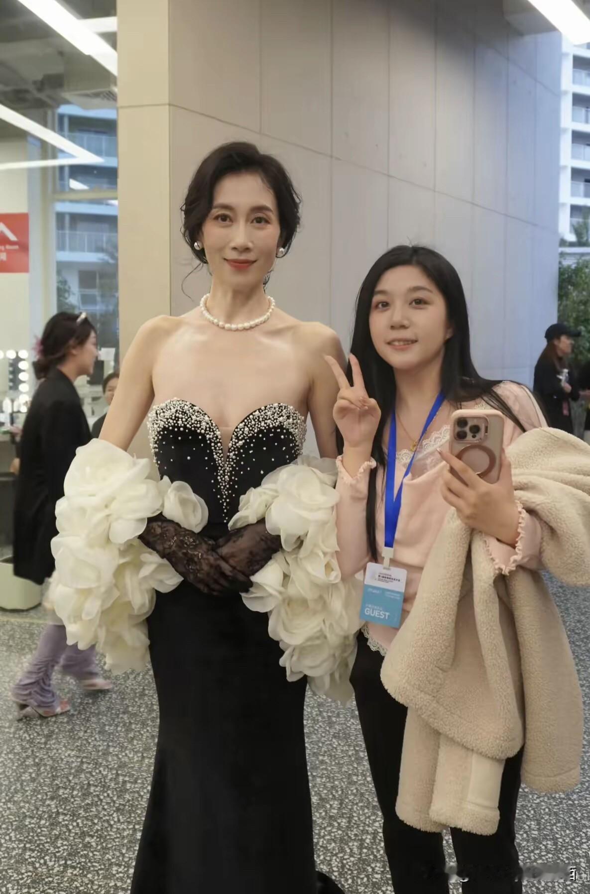 不知道你发现一个现象没有?越是瘦的女明星,身材越不好看的,怎么就喜欢穿这种露肉露胳膊的礼服裙,说实话,这个衣服穿在她身上并没有彰显出什么气质。 颜值和气质看起来还没有旁边这一位打扮普通的女孩漂亮好看,有点刻意打扮了。