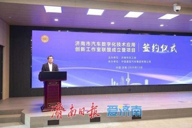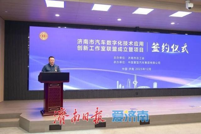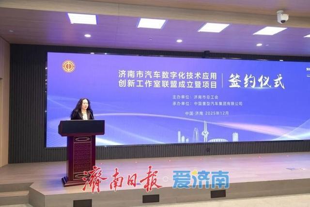 为深入贯彻落实新时期产业工人队伍建设改革要求,持续提升职工创新工作室创建质效,12月25日,济南市汽车数字化技术应用创新工作室联盟成立暨项目签约仪式在中国重汽隆重举行。济南市总工会党组成员、副主席宫俊卿,中国重汽集团党委副书记、董事、工会主席蒋朋朋出席仪式并讲话。