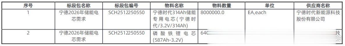 此次采购包含两个标段,分别采购314Ah和587Ah电芯。