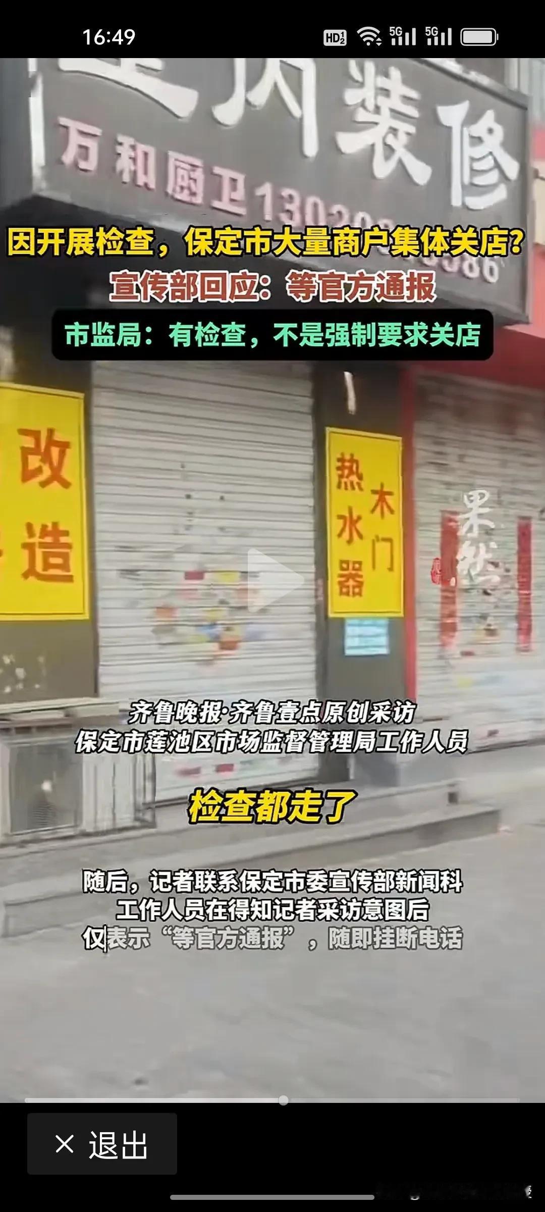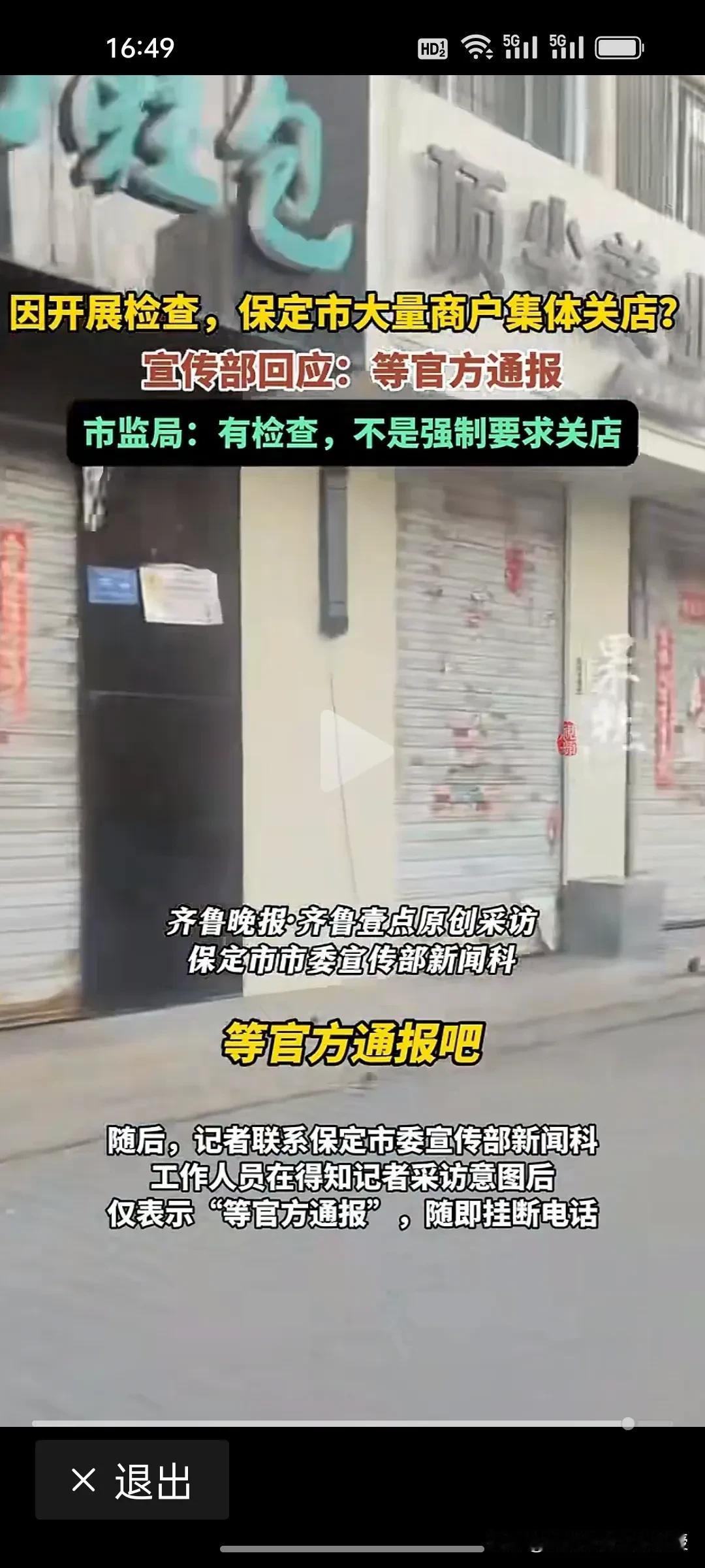 为什么一有检查,大量商家就关门?根据《齐鲁壹点》视频报道,记者致电保定市宣市监局