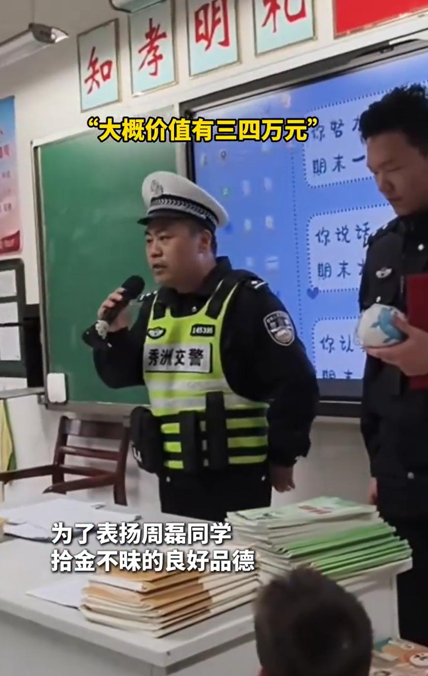 火到新华社了!浙江嘉兴,一名小学生在上学路上看到路边有个金光闪闪的东西,上前捡起一看,竟然是一个金手镯,足足有30克,价值三四万元。可他却没有放到书包里,而是直接交给了路边的交警叔叔,事后公安直接来到男的班级当众表扬,新华社也对其进行了宣传和转载 这名男孩名叫周磊,今年上小学四年级,当天上学路上,他看到绿化带里有一个物品,拿起一看是一枚金手镯,而且重量不轻,他显然不知道具体的价值,但他知道这个东西不便宜,没有犹豫,直接交给了路边执勤的交警 在派出所的寻找下,手镯的失主找到了,而失主在听到捡到手镯的是一名小学生,她也觉得非常惊讶 不过这还没完,几天后,交警特意找到了周磊的学校,走进他的班级。当着全班老师和同学的面,警察叔叔讲述了周磊那天早上的举动,郑重地表扬了他,还颁给他一本红彤彤的证书。全班掌声响起,孩子们投来羡慕又佩服的眼光 有网友说:许多年后这个孩子,会后悔今天做出的这个决定 这句话的潜台词无非是人终究会被现实教育。但问题在于,这件事的收益从来就不只是一只手镯。一个孩子在十岁左右,把不属于自己的东西交出去,这种判断一旦形成,很难再被轻易推翻。以后遇到灰色地带,他会本能地知道哪条线不能踩 换个角度想,如果那天他真的把手镯装进书包,短期看是赚了,长期呢。担心被发现,怕人问起,心里有数不清的小算盘。很多成年人走到后来,其实就是被这些看似赚到的小便宜一点点拖累的 这一次,他因为拾金不昧的行为收到表扬,被同学羡慕,可如果当初他选择藏起来,被监控发现后找到,那同学们可能就是另外一个态度了