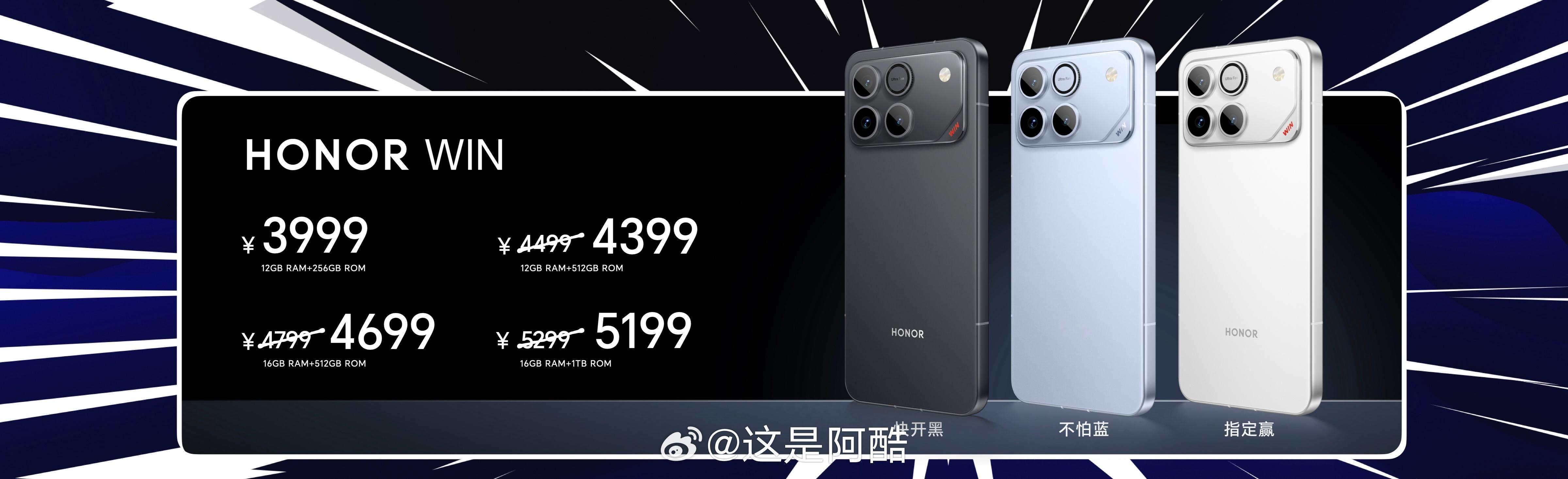 这价格不错啊WIN RT 12GB+256GB、16GB+256GB、12GB+512GB、16GB+512GB、16GB+1TB版本售价分别为2699元、2999元、3099元、3399元和3999元WIN 12GB+256GB、12GB+512GB和16GB+512GB、16GB+1TB版本售价分别为3999元、4499元、4799元和5299元。 荣耀WIN荣耀WIN价格年度夯机荣耀WIN价格真香