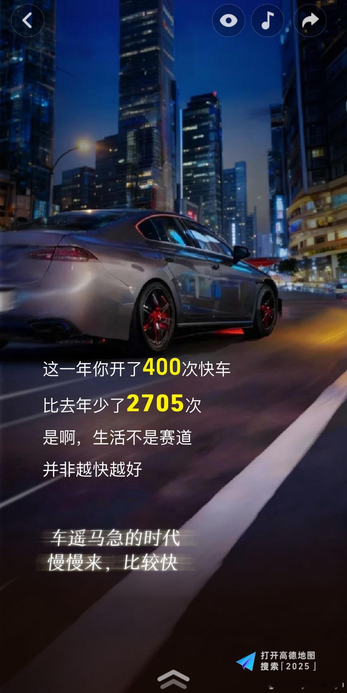 高德地图年度总结来了实际里程应该远远不止这些,可能只算了用高德的里程。我去年开啥了?怎么开快车少了2705次?