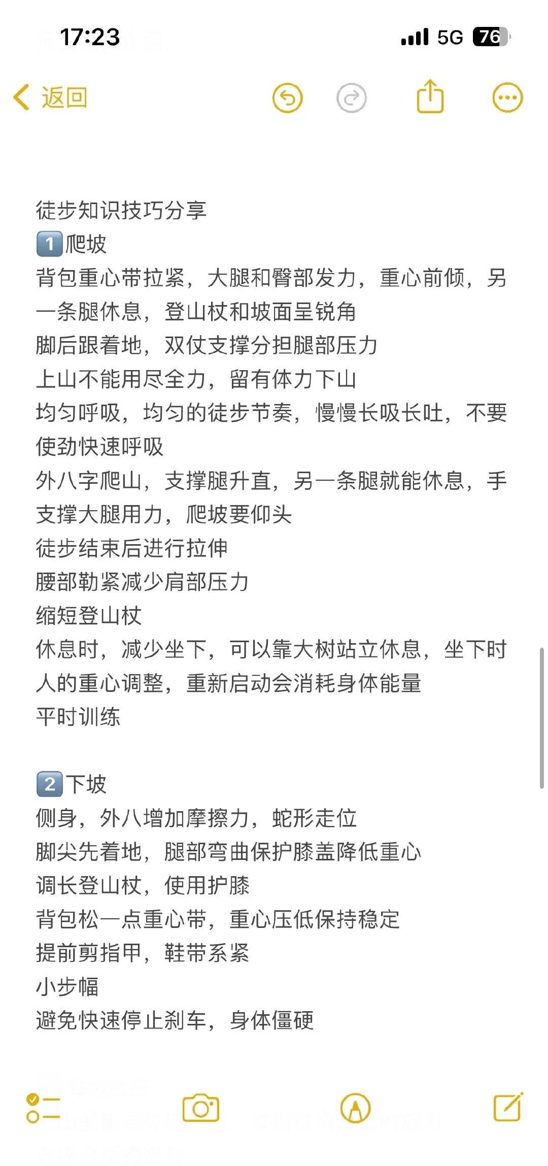 作为美术生分享一个户外小技巧:徒步小白必看!爬坡时重心前倾,登山杖与坡面呈锐角辅助,大腿臀部发力分担压力;下坡侧身外八字更稳,脚尖先着地护膝盖。海拔适应要分阶段,3000-5000逐步过渡,前2天别洗头洗澡别激动。过河选宽缓处,水大带绳组,水小用登山杖3足支撑。迷路就原路返回,标记轨迹吹哨子求救。打包轻下放重放顶,常用物品放表面,重的贴背更省力~户外安全第一,这些技巧记得收藏!