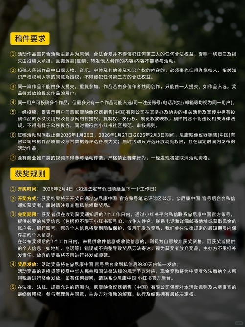 本次「我与尼康的2025年度总结」征集活动将从2025年11月26日持续至2026年1月26日,用户可通过小红书、抖音、哔哩哔哩平台参与活动。不妨趁此岁末时光,翻开你的影像相册,将那些承载着欢笑、感动与成长的2025专属瞬间分享出来,让平凡的日常被更多人看见,让这份独特的年度记忆,在尼康的陪伴下收获别样的惊喜与回响。