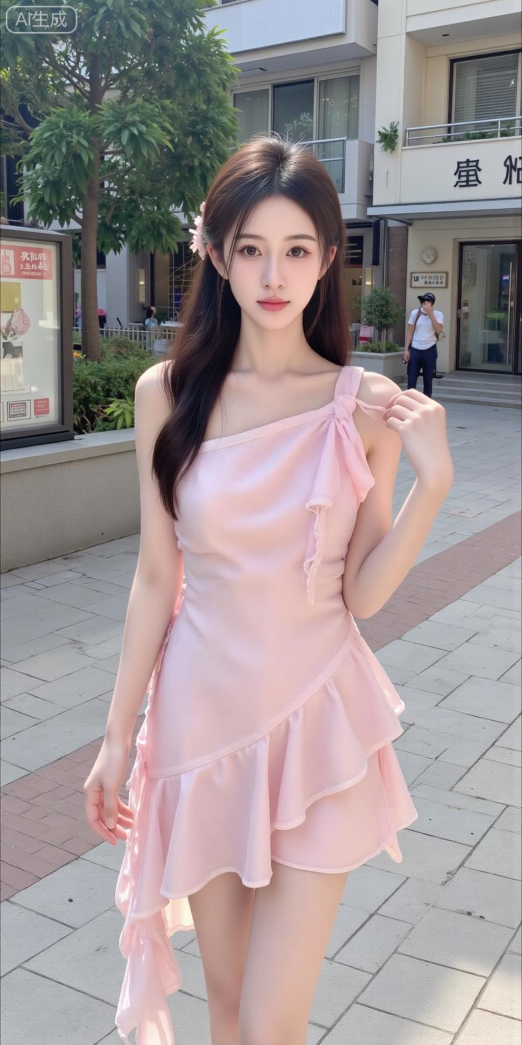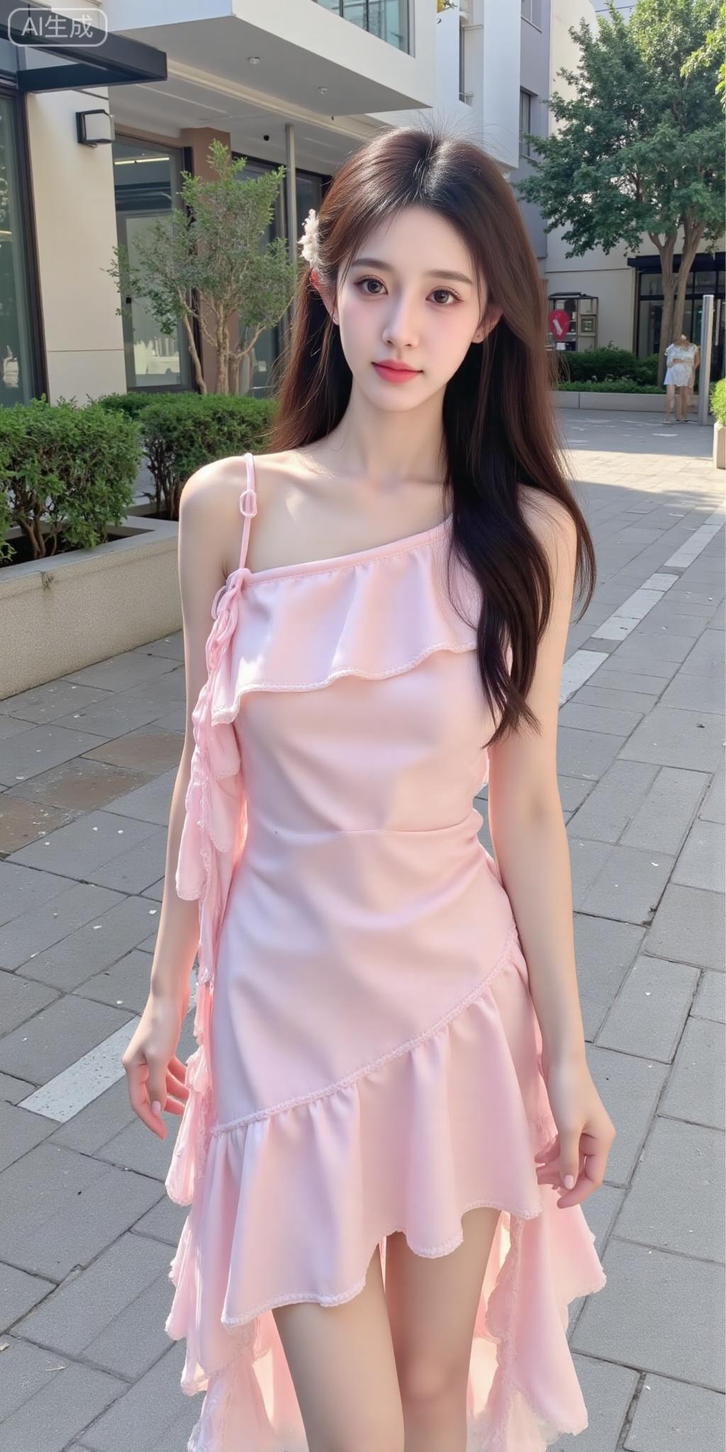 粉裙柔纱衬娇颜,街头甜妹的温柔暴击粉裙仙女 温柔粉裙