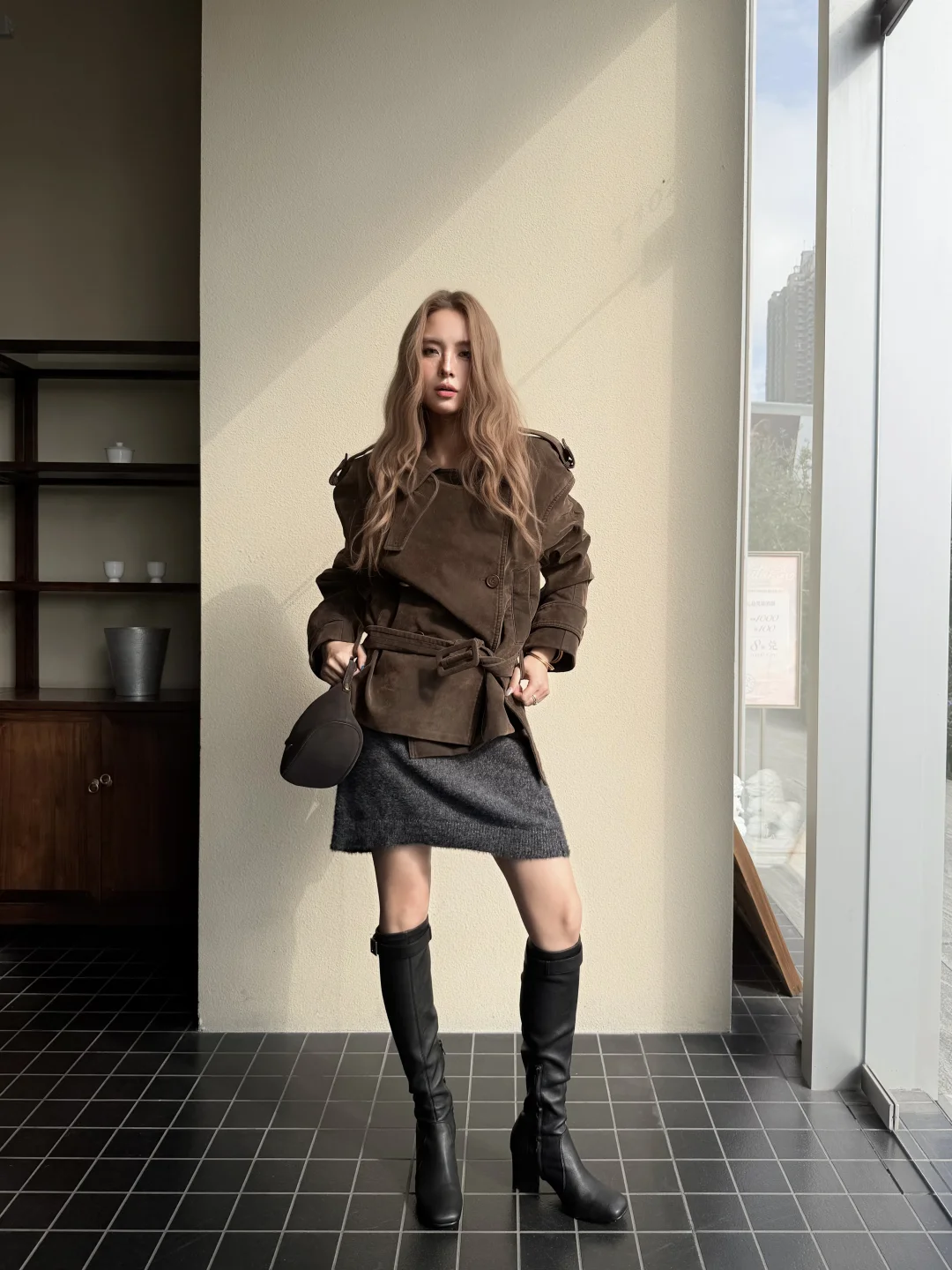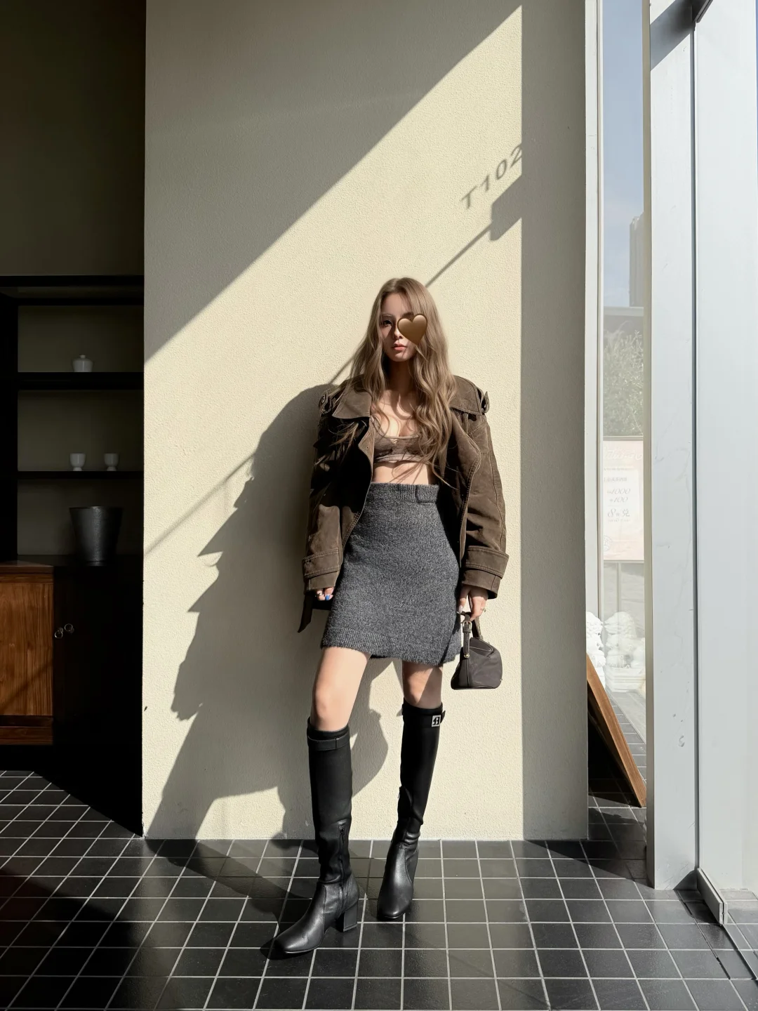 时髦站姐已就位 把糖炒栗子穿上身 秋日时髦尖子生 ootdinspo Softcore 韩里韩气的 ins博主 皮靴 长靴 爱咋穿咋穿
