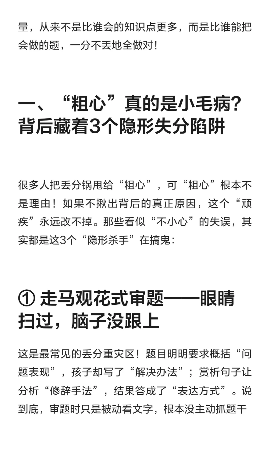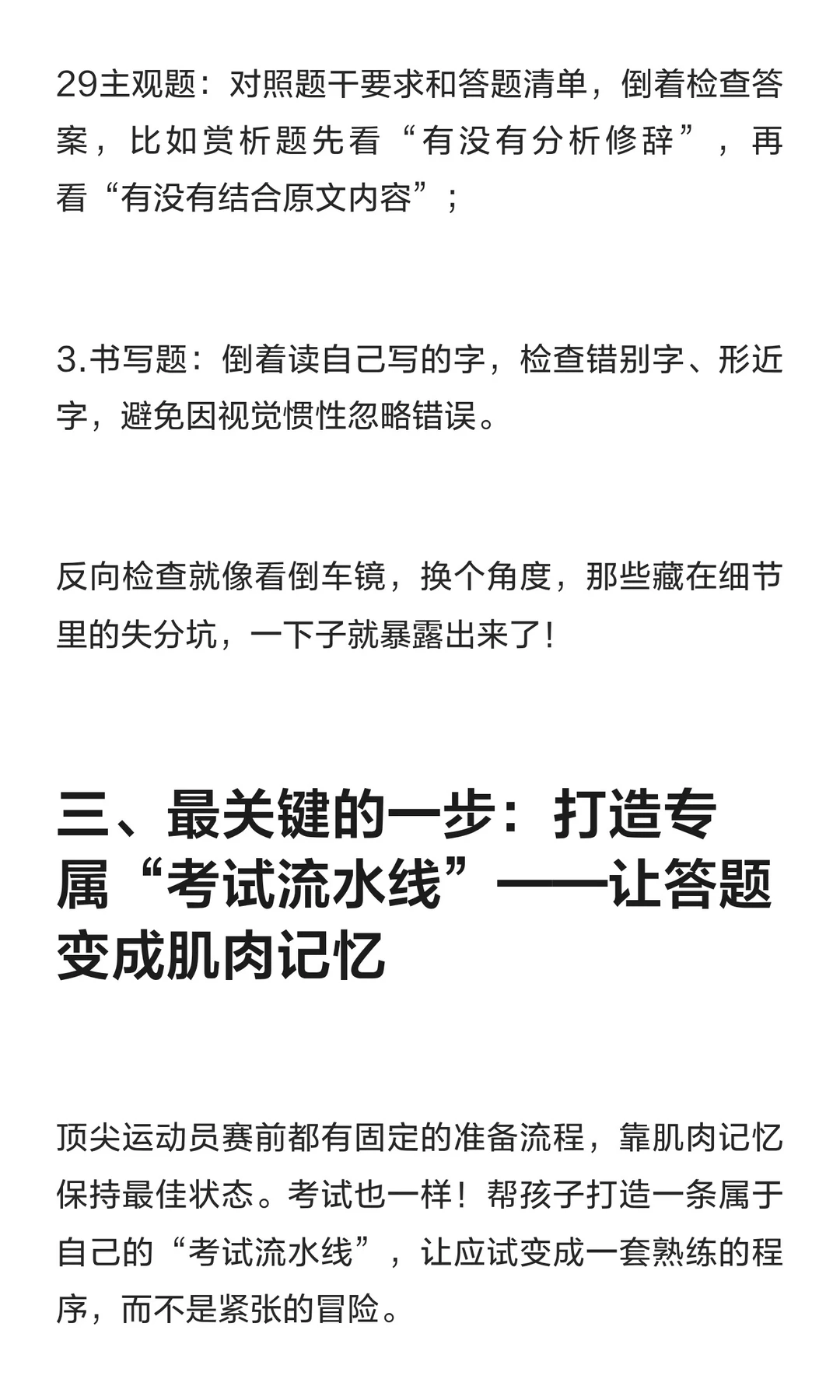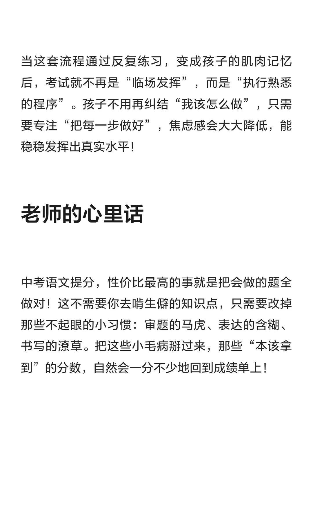 中考语文提分关键在于把会做的题全做对,避免粗心导致的失分。通过“审题强迫症”、答题清单法和反向检查法,帮助孩子养成精准答题的习惯,规范书写,确保每一分都拿稳。打造专属“考试流水线”,让应试成为肌肉记忆,轻松应对中考。