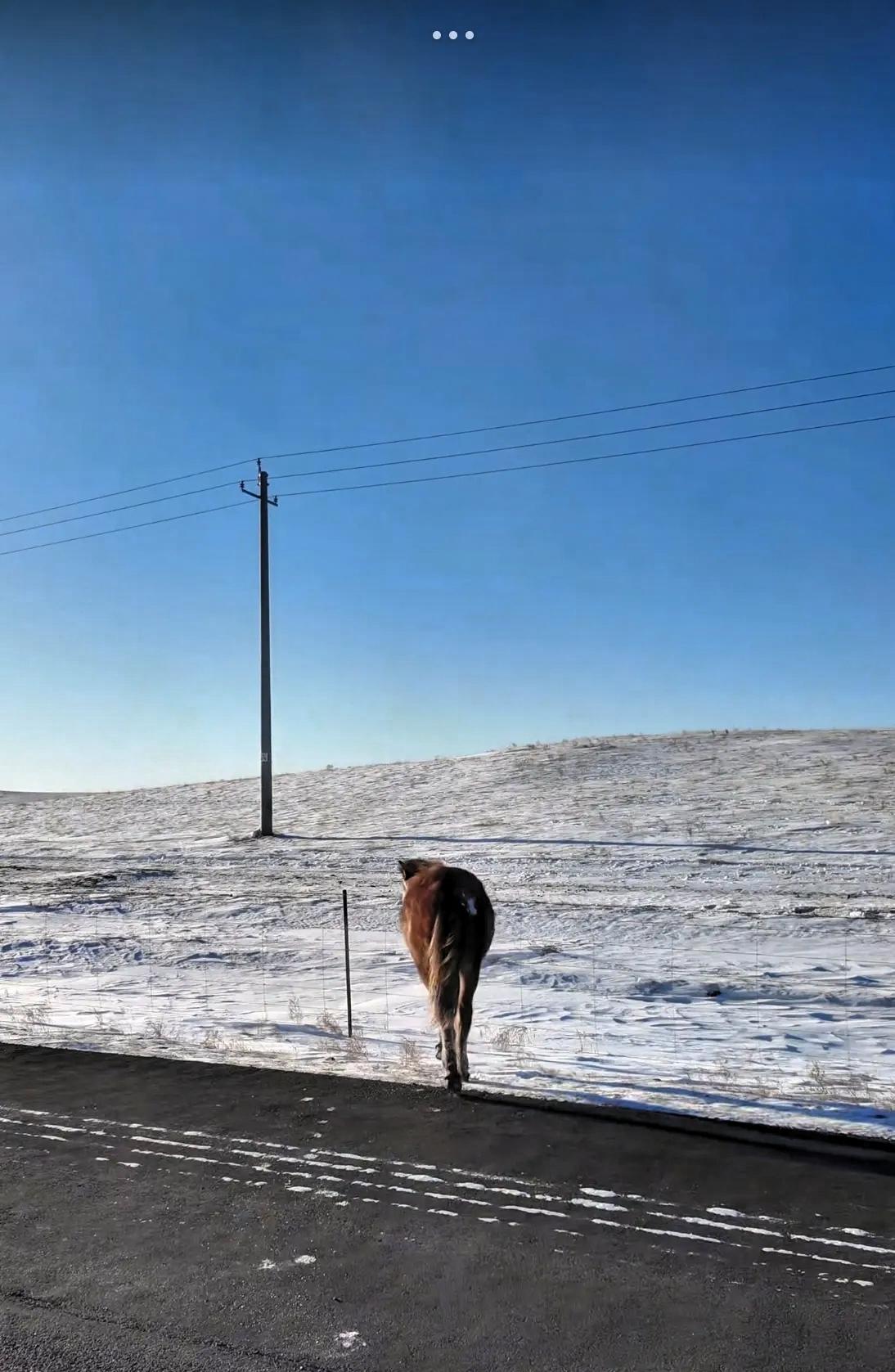 呼伦贝尔,一男子和朋友自驾游,忽然发现一匹马卧在路边雪堆里一动不动,本以为马是冻