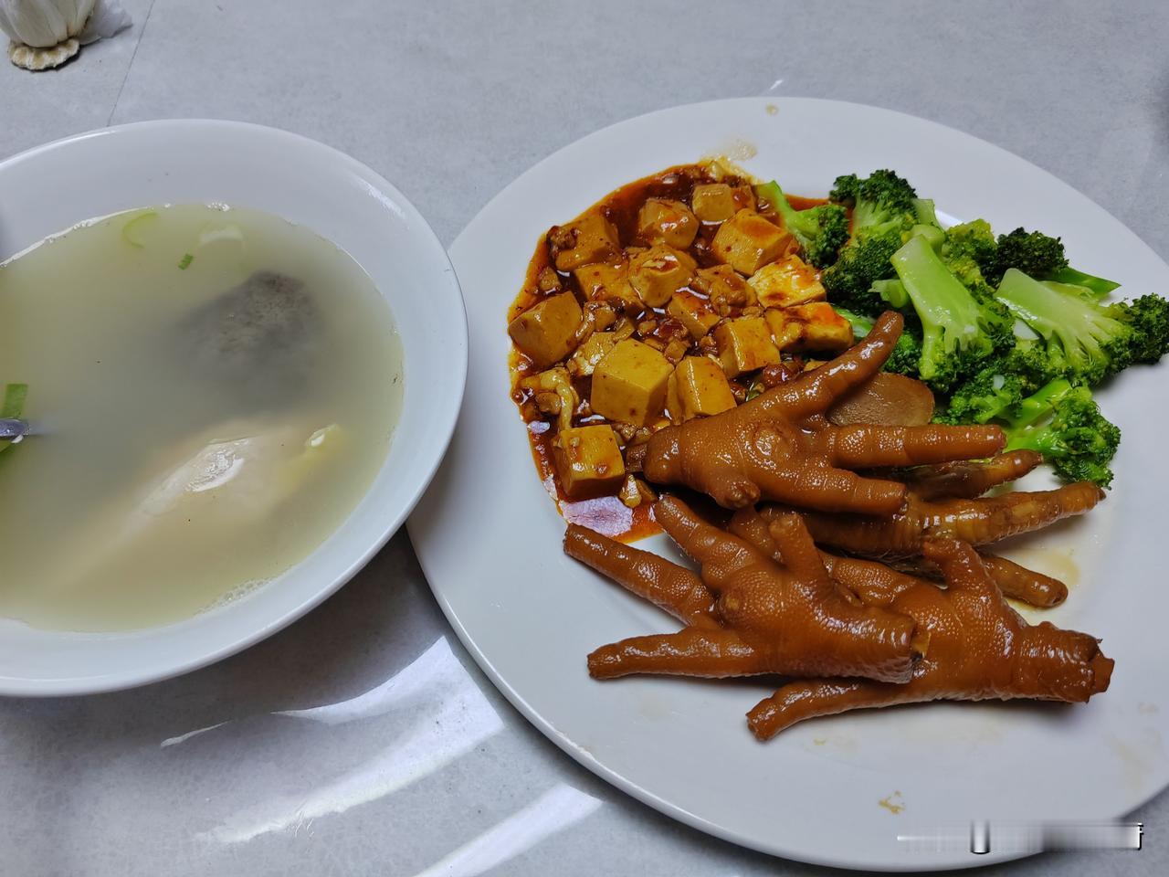 现在已经到了日本的第二个卸货港——名古屋。今天早上一觉醒来,感觉是好冷啊,在厨房里穿短袖,直接是穿不住了,冻得我直打哆嗦。 厨房里4块电热板打开了3块,升温一个小时了,还是那么冷,赶紧回房间,把长袖穿上了,我从手机上看了一下当地的温度,今天是3到7度,厨房的油烟机从外向里直吹冷风,弄的厨房里一点也不暖和。 这才是第二个卸货港,第三个卸货港还要再向北航行两天,说是在北海道,那是不是就特别的冷了?跟中国的东北温度差不多了吧,前几天开进港会议的时候,领导说,第三个卸货港很可能会下雪,让大家一定要注意安全,这么看来是真的了。 今天是上伙食后的第三天,中午做的炒猪肚,在煮猪肚的时候,我没有加很多的大料,只加了一点点葱姜片和花椒,猪肚捞出来的时候,我看到这个汤汁很白,而且也没有什么异味,于是就赶紧拿出来一只老母鸡解冻,下午就用这个猪肚汤做的老母鸡汤,这是前段时间我听一个网友说的,猪肚炖老母鸡汤很好喝,而且有营养,所以今天就这么做了。 今天的晚餐是红烧鸡爪,麻辣豆腐和素炒西兰花。(图三是今天的茶点)