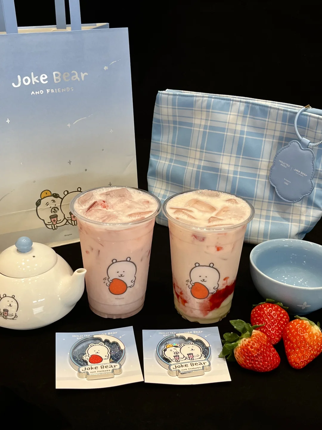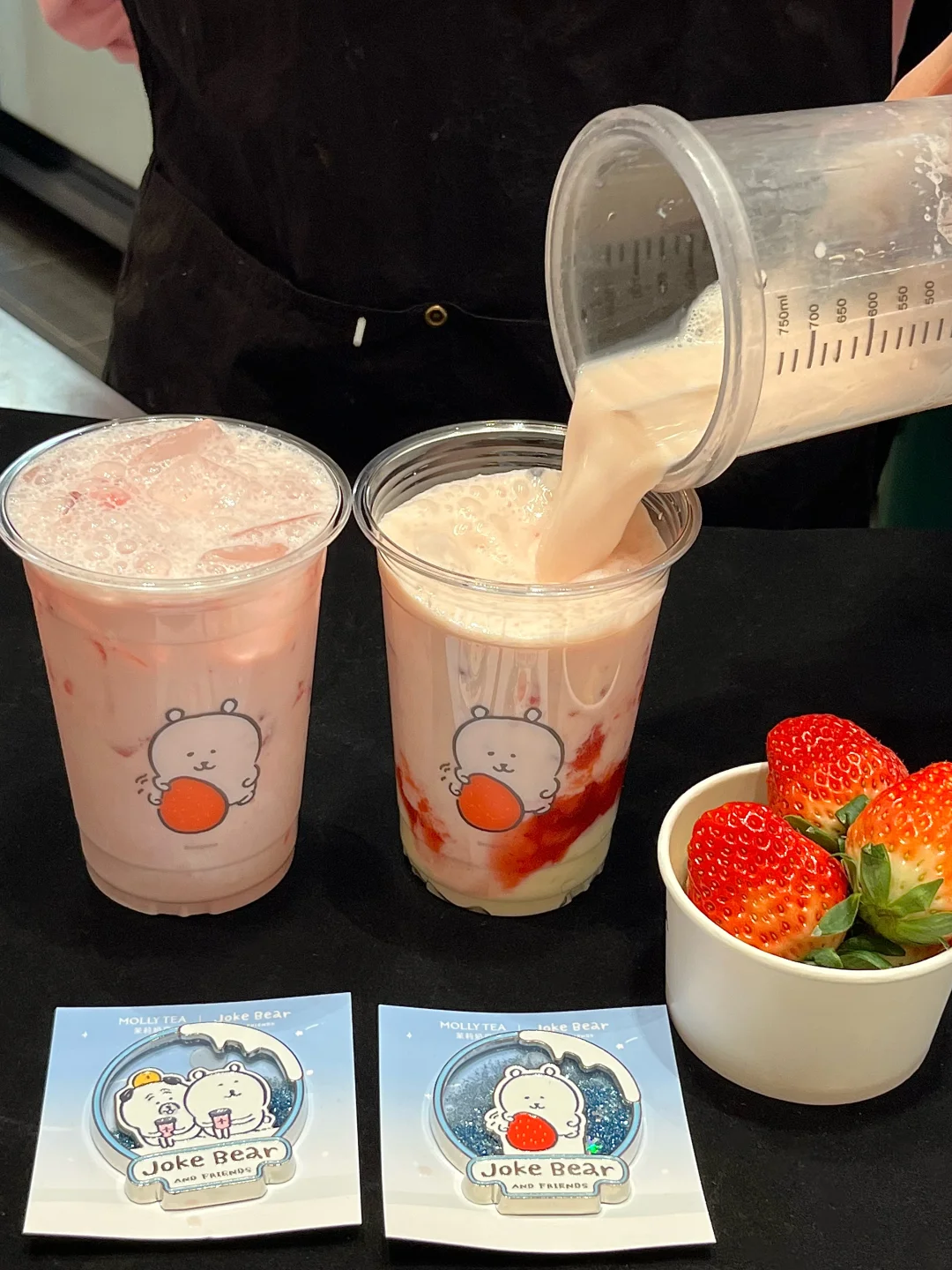 谁懂啊家人们!!茉莉奶白和自嘲熊的联名真的可爱到我心巴上💘 新品针王草莓系列直接封神! 🍓针王草莓大福&针王草莓两款都巨好喝,清爽不腻还能嚼到果肉, 酸甜果香混着茉莉茶香 夏天喝一口直接爽到飞起~ 但我宣布!周边才是本体!!自嘲熊和朋友们的流沙冰箱贴、 质感满分的手提帆布袋、精致茶壶套装, 还有联名杯+联名纸袋,每一款都长在我的萌点上, 拎出门回头率直接拉满💯 不用犹豫!上新直接冲就对了!!错过真的会哭😭