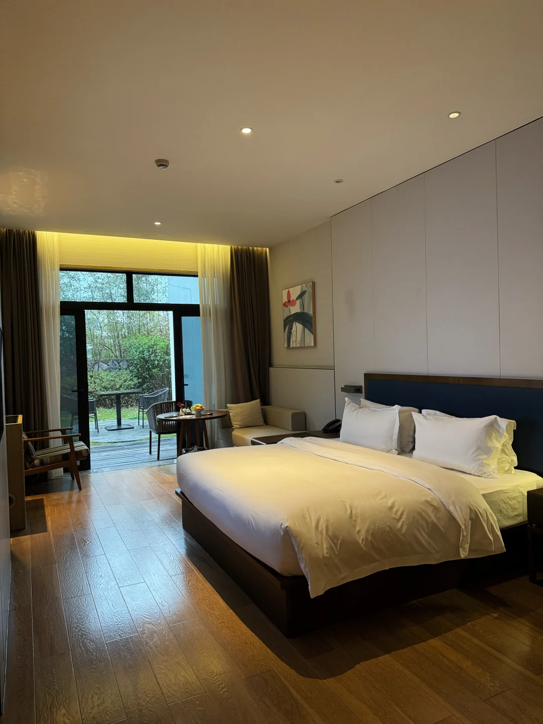 但这次订的田园庭院房真的爱了,空间大到离谱,干湿分离的卫浴太懂女生了——浴缸和淋浴分开,双台盆+亮堂堂的镜前灯,两个人同时洗漱效率更高🪞躺上软乎乎的大床,晚上睡得巨香!