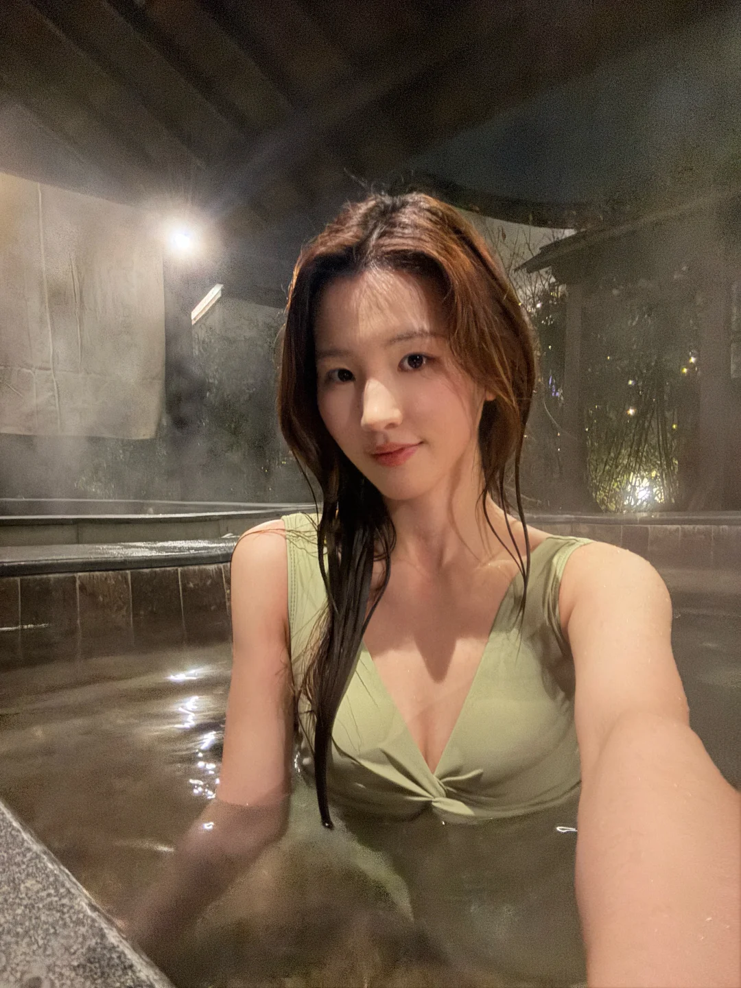 阴雨天泡私汤真的是绝配!暖融融的泉水泡得全身都热乎乎的,所有寒意和疲惫都被冲跑了,看着雨丝打在庭院的绿植上,氛围感直接拉满。