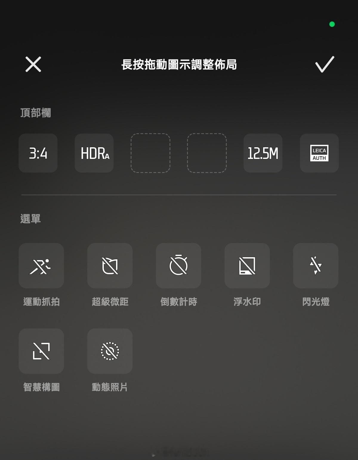 小米17 Ultra 的相机交互也有一些变化:首先,顶部常驻选项现在可以自定义了