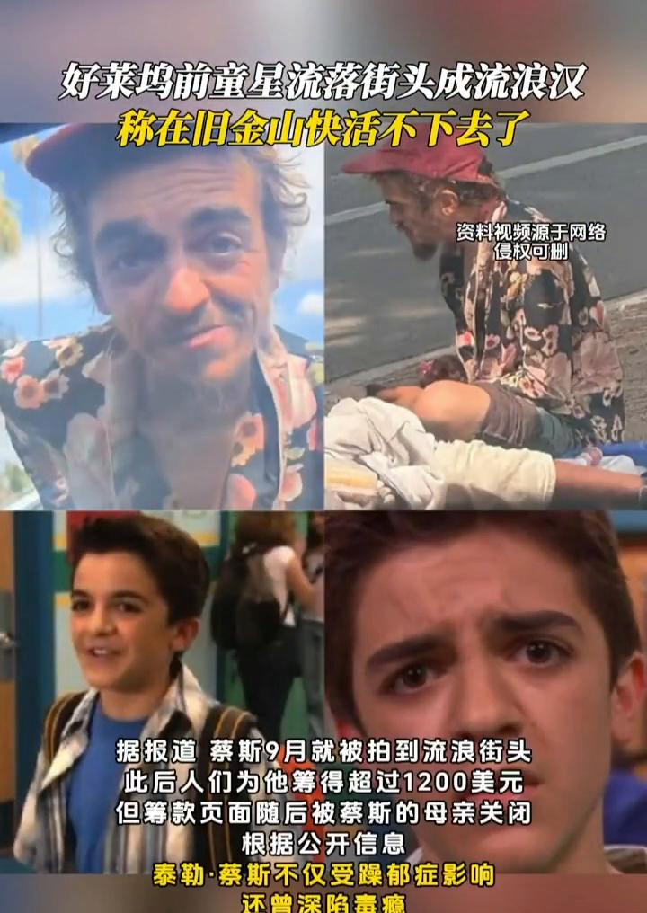 好莱坞前童星流落街头成流浪汉,称在旧金山快活不下去了。 据美媒报道,近日美国前童星泰勒·蔡斯衣衫褴楼露宿洛杉矶街头,引发广泛关注。这名36岁演员因出演《尼德的校园生存指南》而为人所熟知。 据报道,蔡斯9月就被拍到流浪街头,此后人们为他筹得超过1200美元,但筹款页面随后被蔡斯的母亲关闭。根据公开信息,泰勒·蔡斯不仅受躁郁症影响,还曾深陷毒瘾。