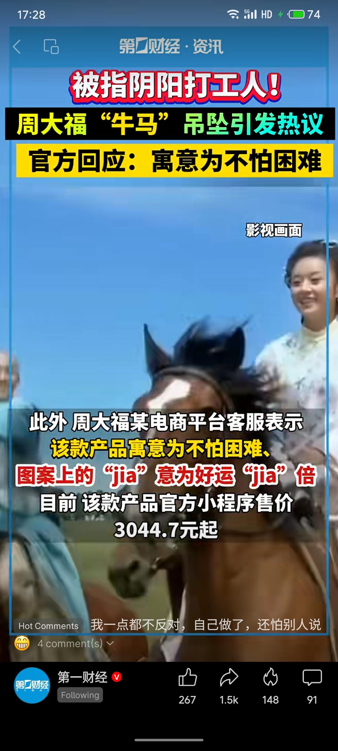 周大福“牛马”吊坠因宣传语“金牌牛马”被指嘲讽打工人,引发争议。官方解释为“不怕
