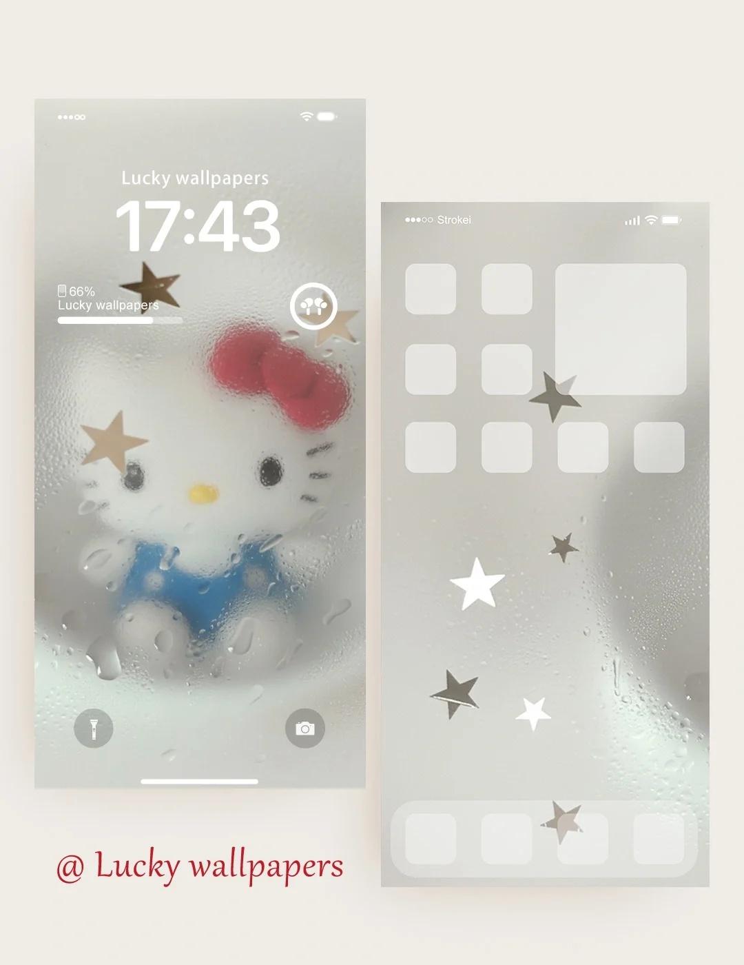雾面玻璃感Kitty壁纸也太治愈了✨ 凯蒂猫 hellokitty壁纸少女心 星星 幸运壁纸 氛围感壁纸少女心满满 手机壁纸 今日壁纸分享