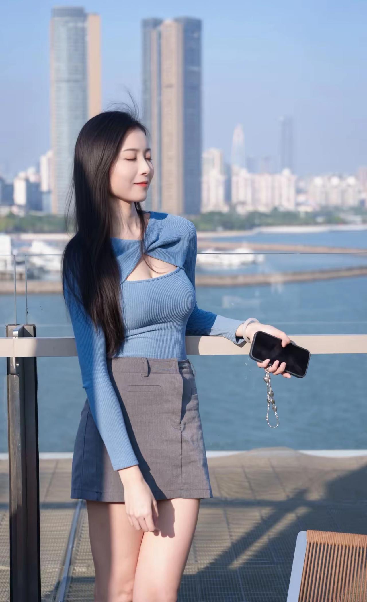 漂亮美人,海边景色,美极了