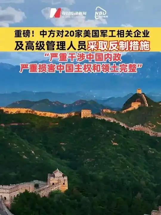 重磅!中方强力反制美对台售武行径 2025年12月26日,外交部火力出击,发布“关于对美国军工相关企业及高级管理人员采取反制措施的决定”,以强硬姿态回应美方恶劣行径。 近期,美国公然践踏国际准则,宣布向中国台湾地区大规模出售武器。这一行为严重违反一个中国原则和中美三个联合公报,是对中国内政的粗暴干涉,更是对中国主权和领土完整的公然挑衅。 依据《中华人民共和国反外国制裁法》相关规定,中方果断出手。对诺斯罗普·格鲁曼系统公司等20家美国军工相关企业,冻结其在我国境内的各类财产,禁止国内组织、个人与之开展交易、合作等活动。同时,对帕尔默·卢基等10名企业高级管理人员,不仅冻结财产、禁止交易合作,还不予签发签证、不准入境(含港澳地区)。 中方此次反制措施,是对美方挑衅的有力回击,彰显了捍卫国家主权和领土完整的坚定决心。中国维护国家统一的意志坚如磐石,绝不允许任何外部势力插手台湾事务。美方若继续执迷不悟,必将自食恶果,付出更为沉重的代价。这一决定自2025年12月26日起正式施行,向世界传递出清晰而坚定的信号。