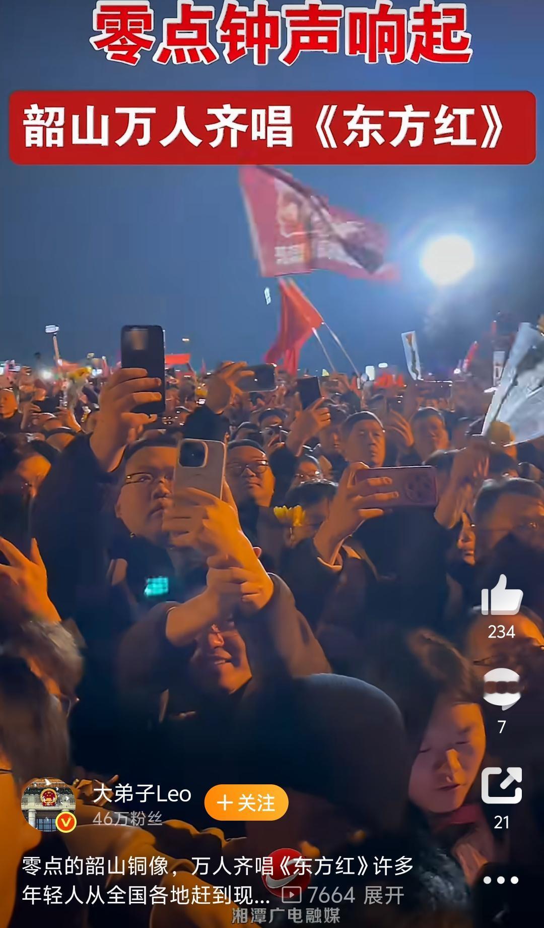 纪念毛主席诞辰132周年 韶山万人齐唱东方红 人民日报简洁明了 国防时报的视频就