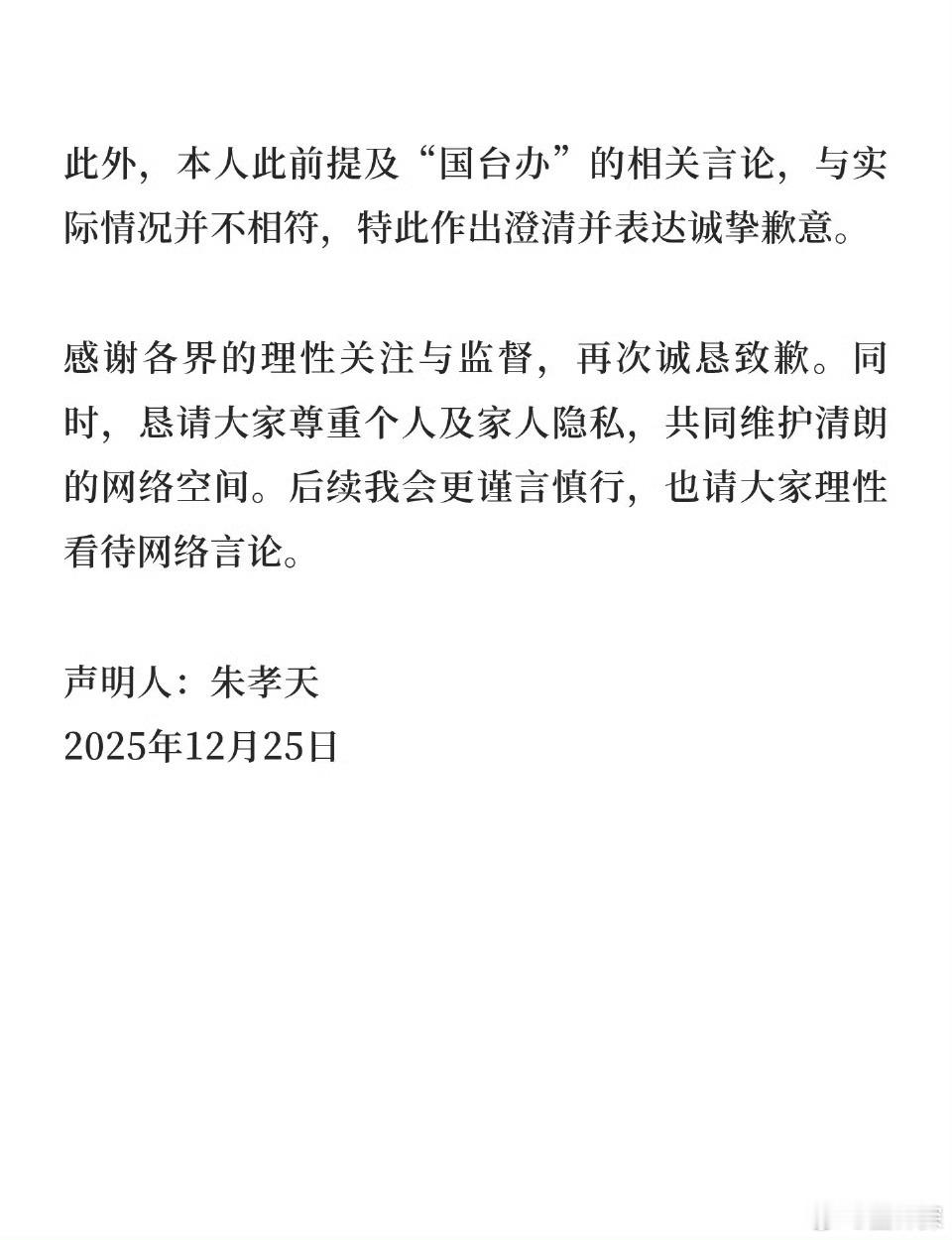 朱孝天道歉了!估计是得罪大佬了,终究是小胳膊拧不过粗大腿啊,人家要是没有强大的