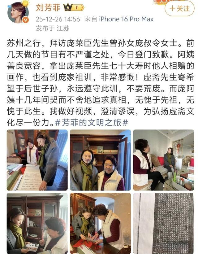 [吃瓜群众]刘芳菲,好手段——作为“央视前主播”,“庞戎爆雷”后,立刻马上追到庞家,以个人名义“道歉”,还发个宾主“其乐融融”合照…[思考]蹭热点、撸流量,顺便“立人设”[6]此情此景,思思姐和夏丹只能干瞪眼,不服不行[捂脸]
