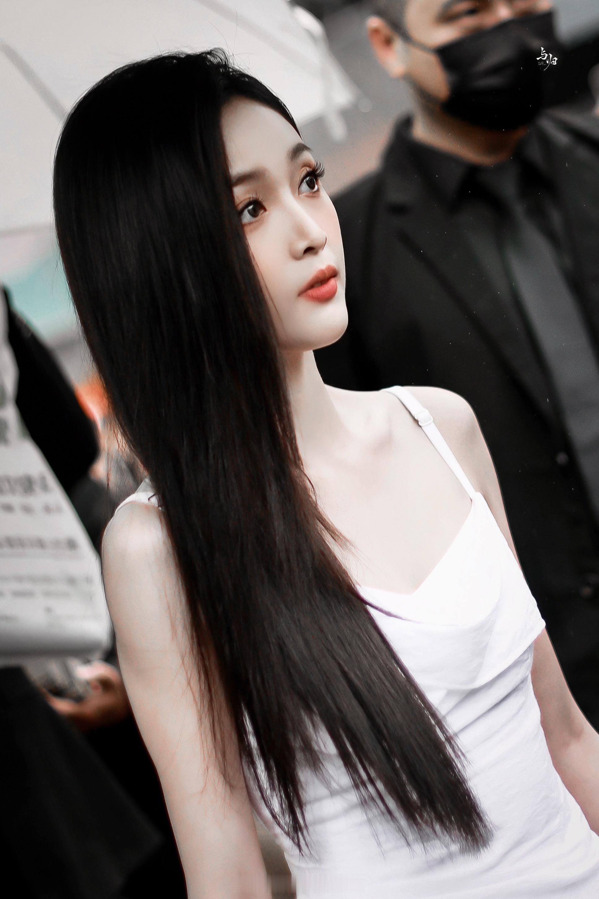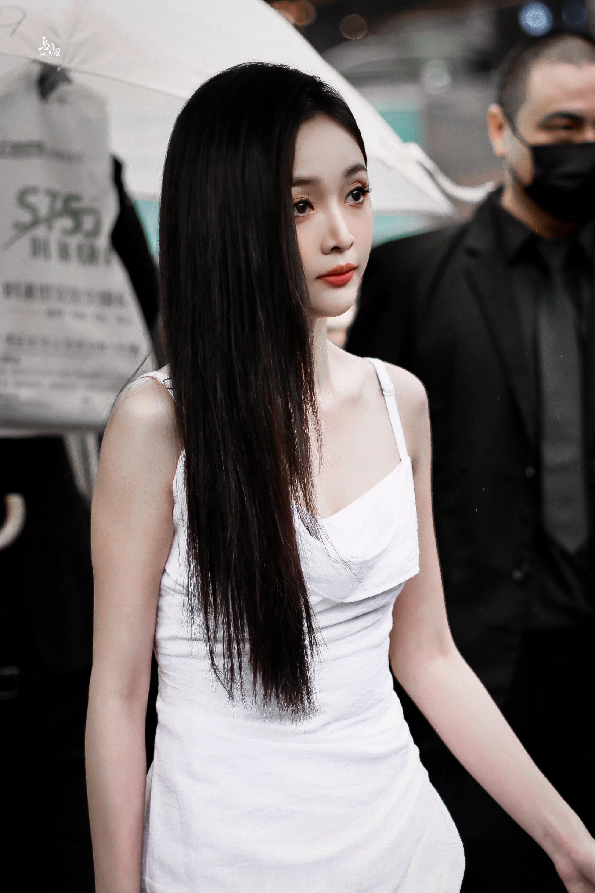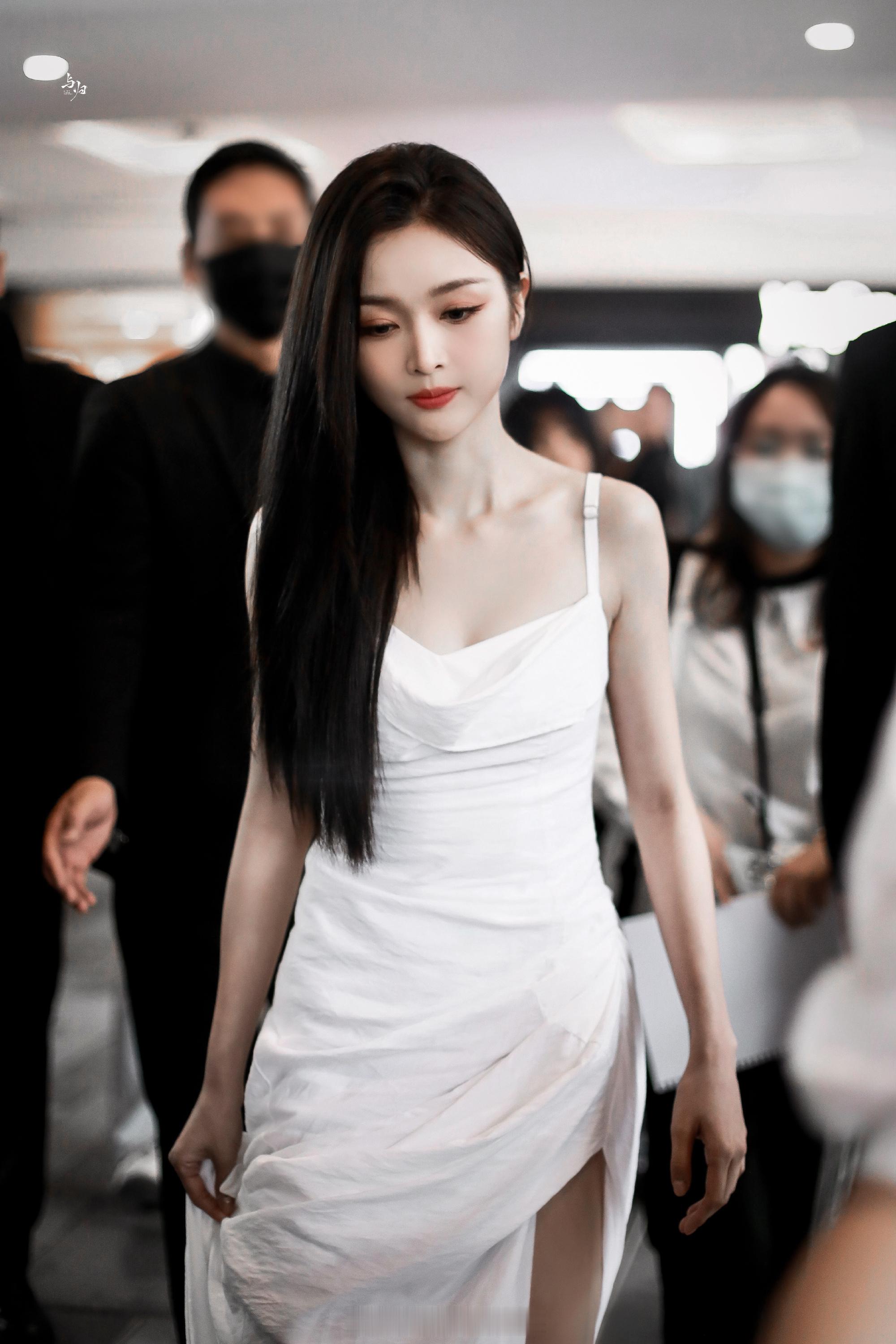 吴宣仪白色吊带露背长裙活动美照