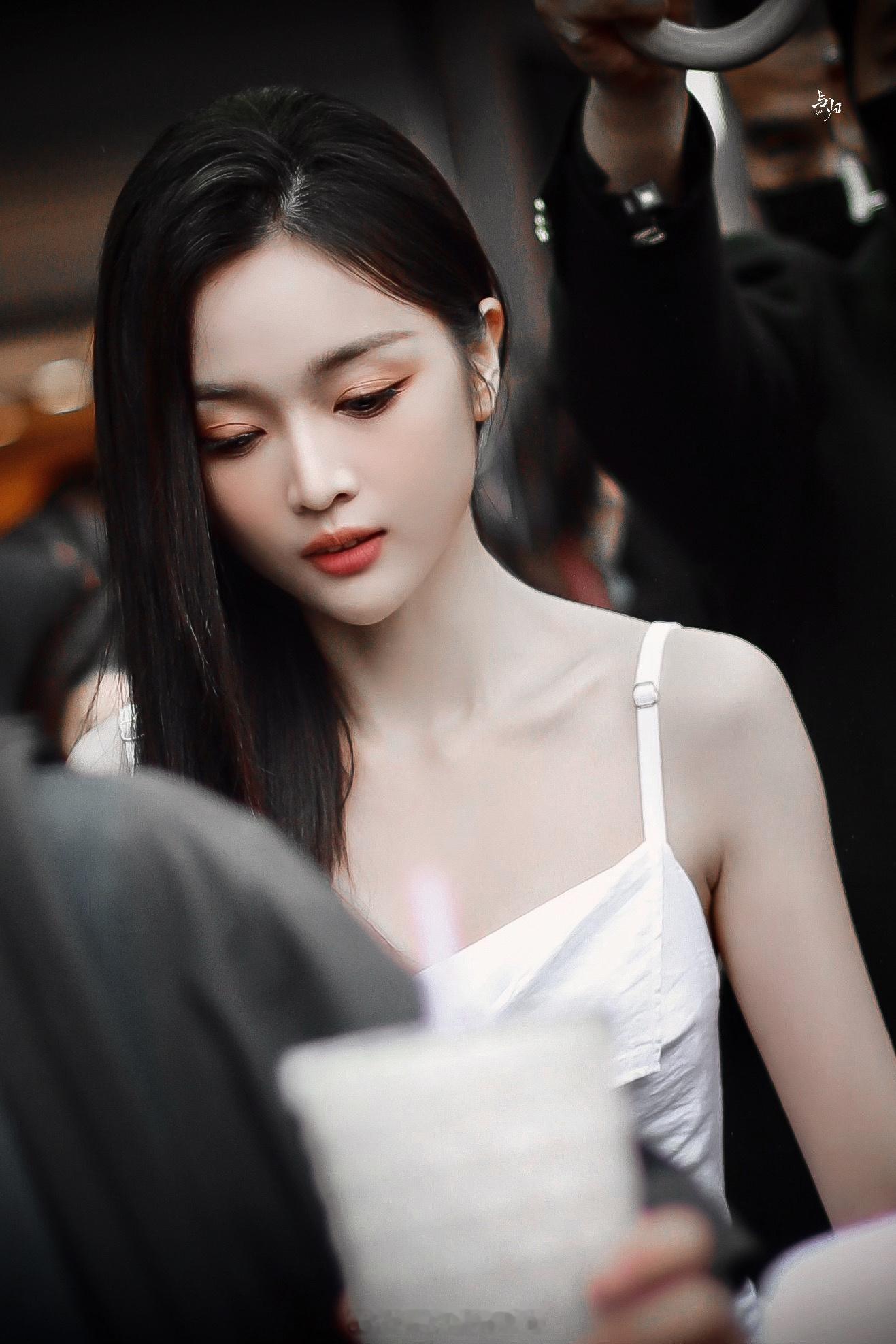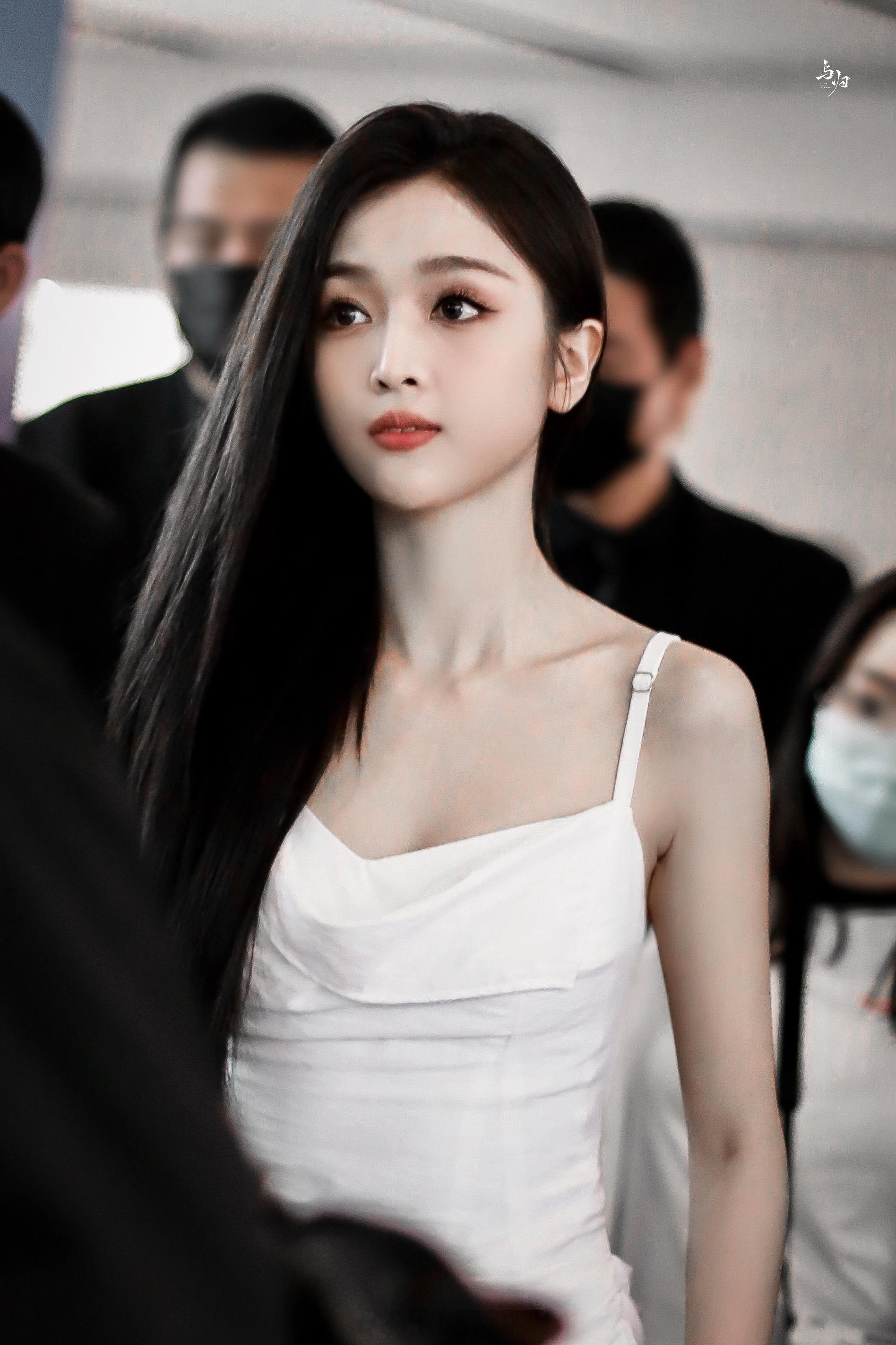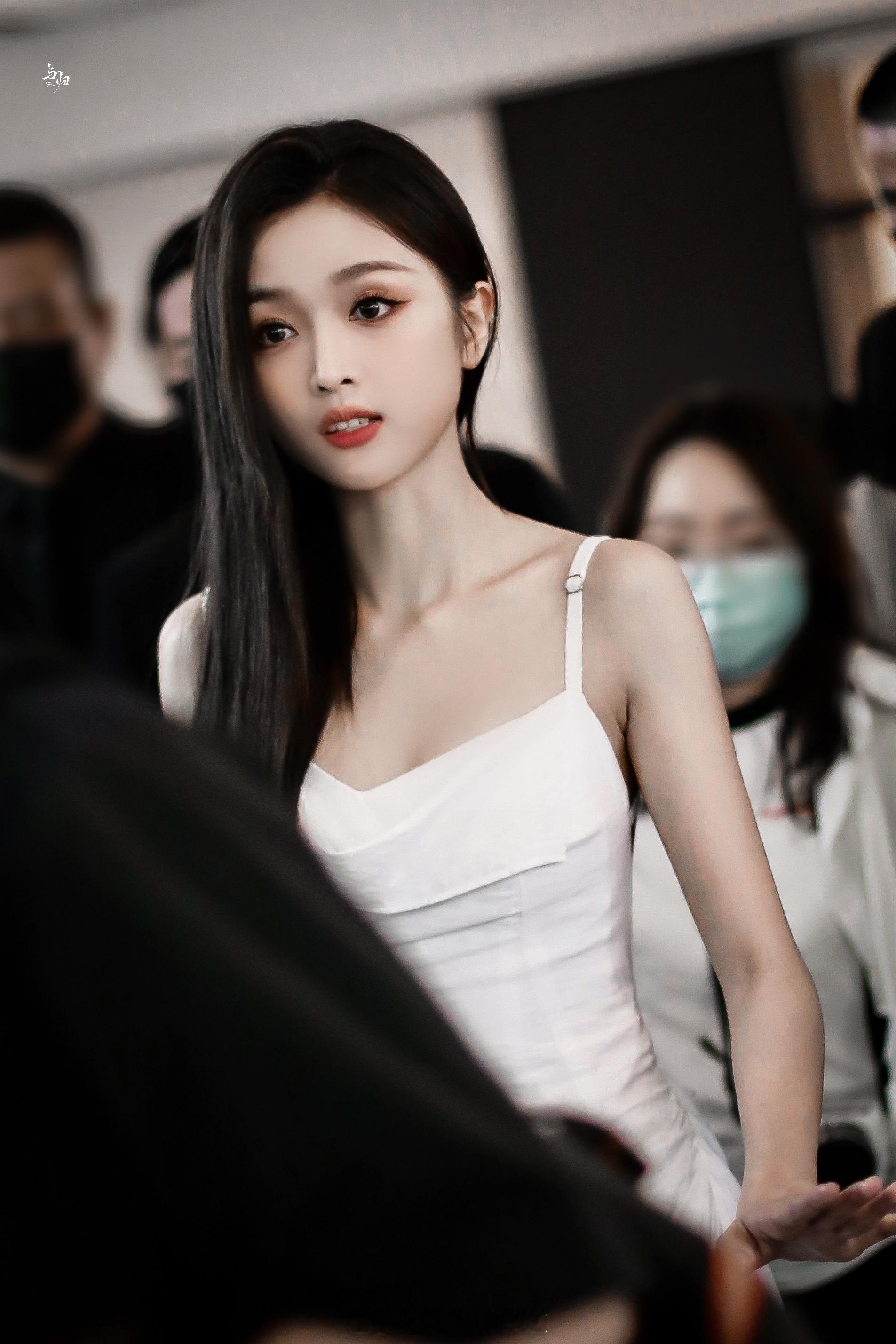 吴宣仪白色吊带露背长裙活动美照