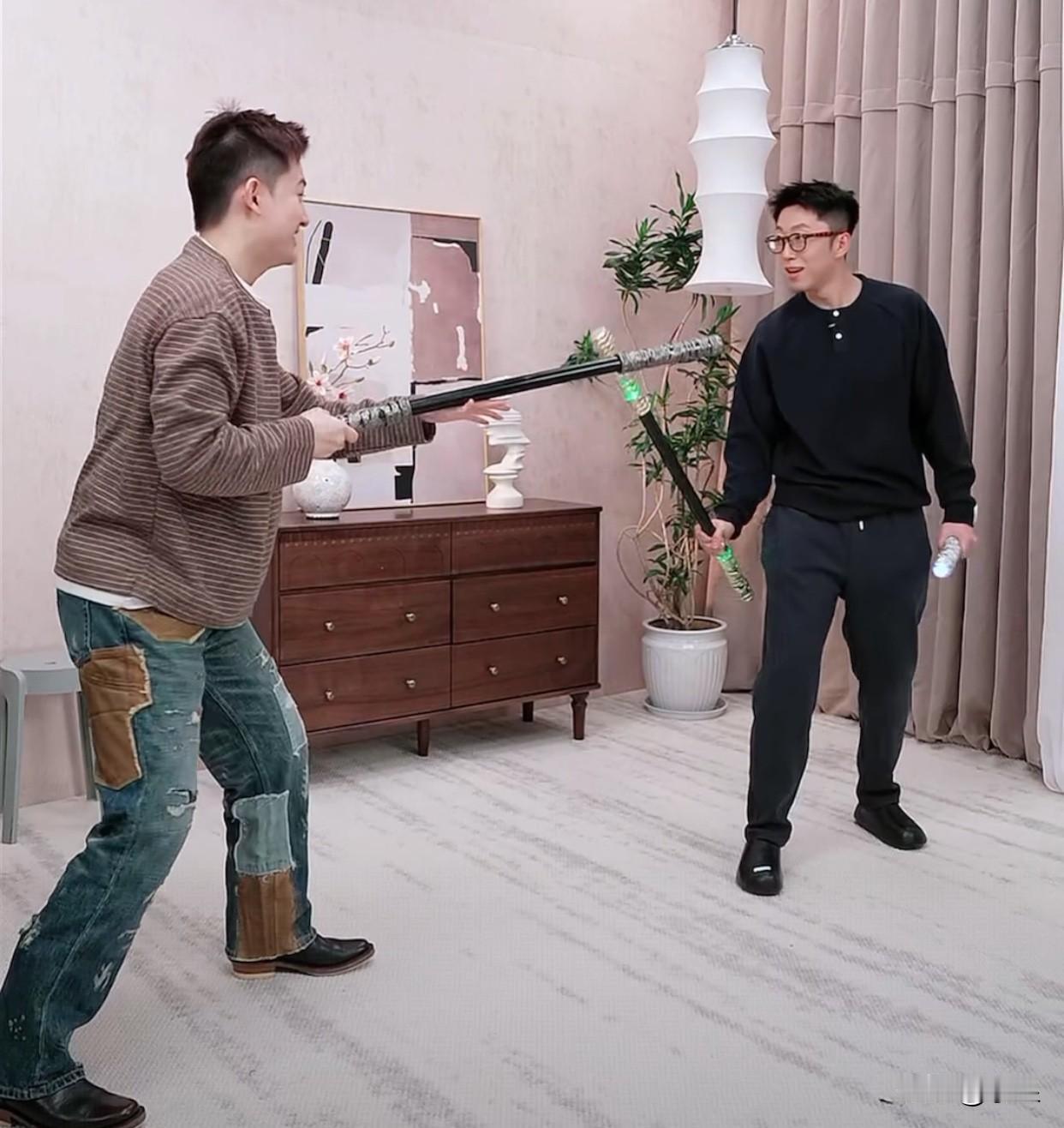 董董穿着他的丑裤子[偷笑] 去兰知春序串门儿 还顺走了两根金箍棒 相信很快就能看见董礼貌拿着玩儿[笑哭] 这会儿董董和汉森 已经先拿着玩嗨了 果然男人至死是少年 给他们一根棍儿 能玩几小时[耶] 别小看这根棍子 汉森说已经卖了1万单 说是小孩的玩具 感觉不少大人也买了[偷笑] 可以闪光的金箍棒多酷炫啊 过年拿回家给亲戚小孩儿玩 世界都安静了,绝对没人闹你[笑哭] 小兰选品的人有点东西[赞]