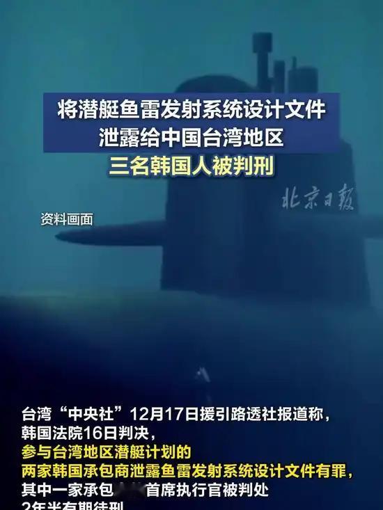 惊爆!韩国前军官泄密,巨额罚单与牢狱之灾齐至 2025年12月26日,一则来自韩国法律界的消息如重磅炸弹,引发广泛关注。据环球网报道,韩联社、《朝鲜日报》等媒体披露,一名韩国海军中校出身、现任防务产业企业代表的涉案人员,因严重泄密行为,被昌原地方法院刑事审判第3独任庭判处有期徒刑2年半。 原来,在2019年至2020年期间,该涉案人员未经韩国政府许可,胆大妄为地将韩国企业大宇造船海洋(现韩华海洋)的潜艇设计资料,非法提供给了台湾地区的一家造船厂,其中甚至包含关键的鱼雷发射管设计图。这一行为严重违反了相关规定,对国家安全和利益造成了极大损害。 法院对此案毫不手软,不仅对涉案人员判处了监禁,还对其运营的军工企业开出了巨额罚单,要求缴纳罚金150亿韩元(约合人民币7275万元),同时追缴违法所得950亿韩元(约合人民币4.6亿元)。这一判决彰显了法律对泄密行为的零容忍态度,也警示着任何企图破坏国家安全、损害国家利益的行为,都将受到严厉制裁。